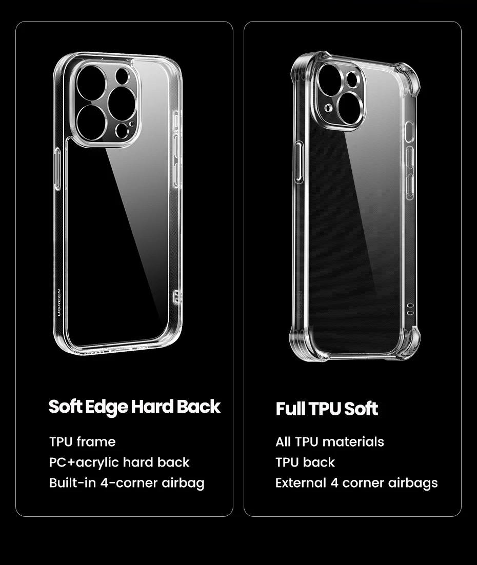 The upgraded version [Soft Edge Hard Back] is a soft-sided hard back case with built-in airbags, while the mobile phone case suitable for [