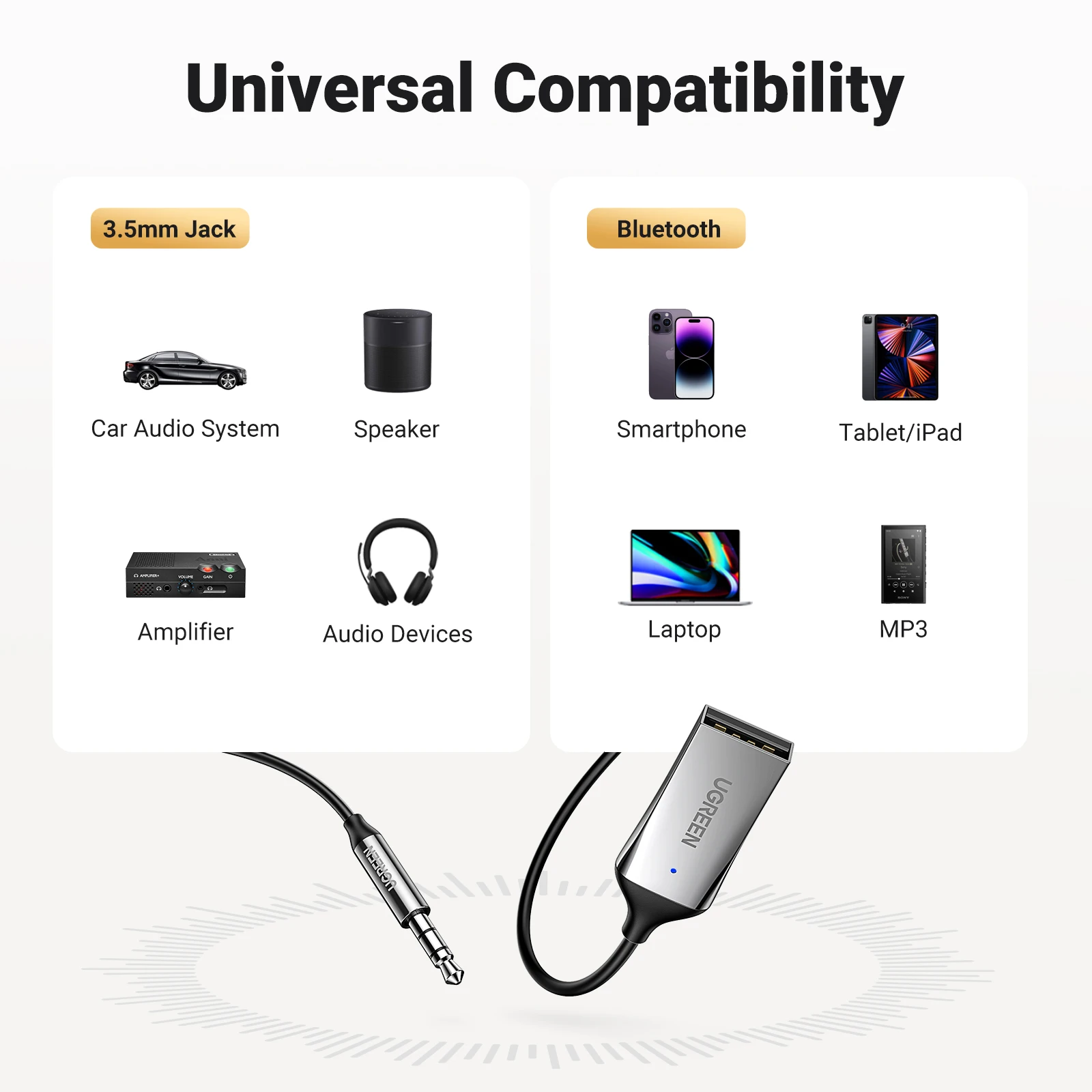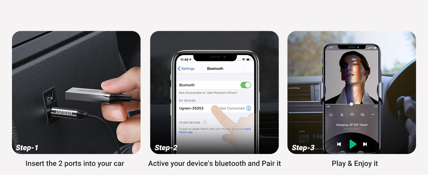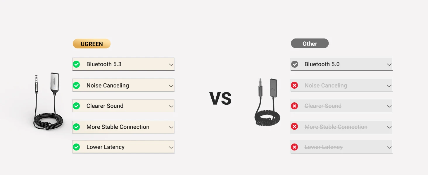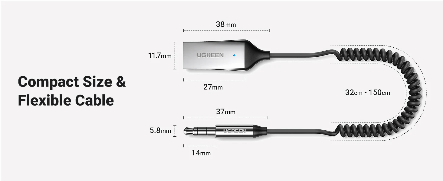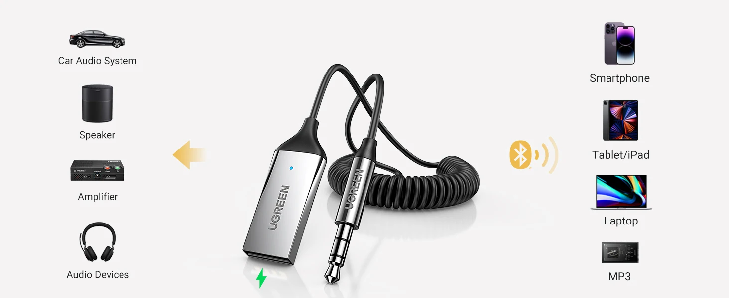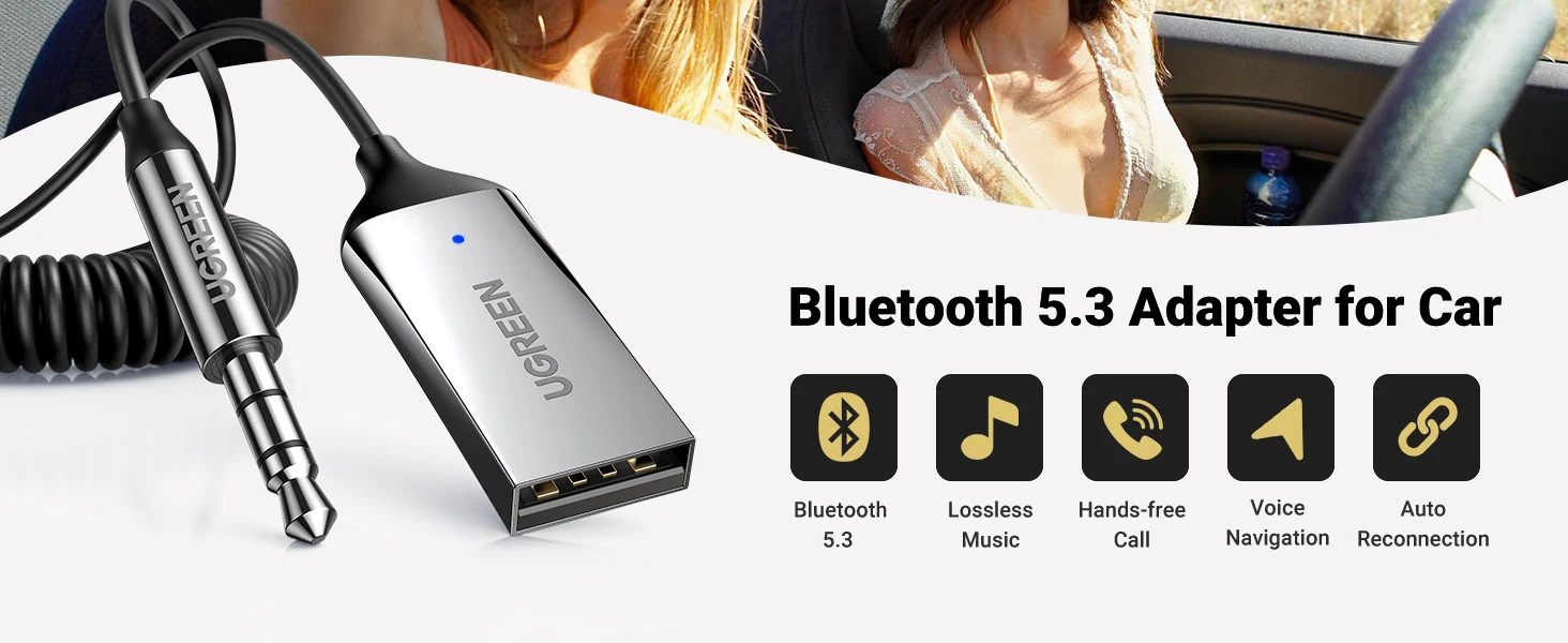 UGREEN Bluetooth Audio Receiver Car Adapter USB Wireless Car USB to 3.5mm Jack Mic Handsfree Bluetooth 5.3 for Car Accessories