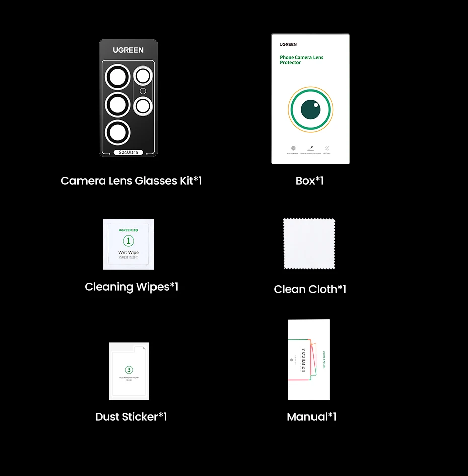 UGREEN Camera Protector is made of Corning glass as raw material ,which has ultra-high light transmittance; it uses AR anti-reflection technology to solve the problem of lens glare and ghosting after taking pictures with a protective film on them from the source.