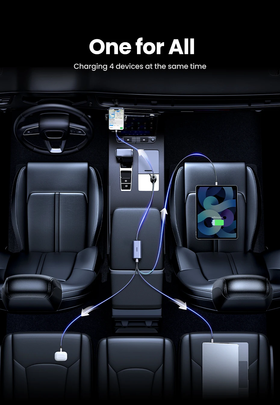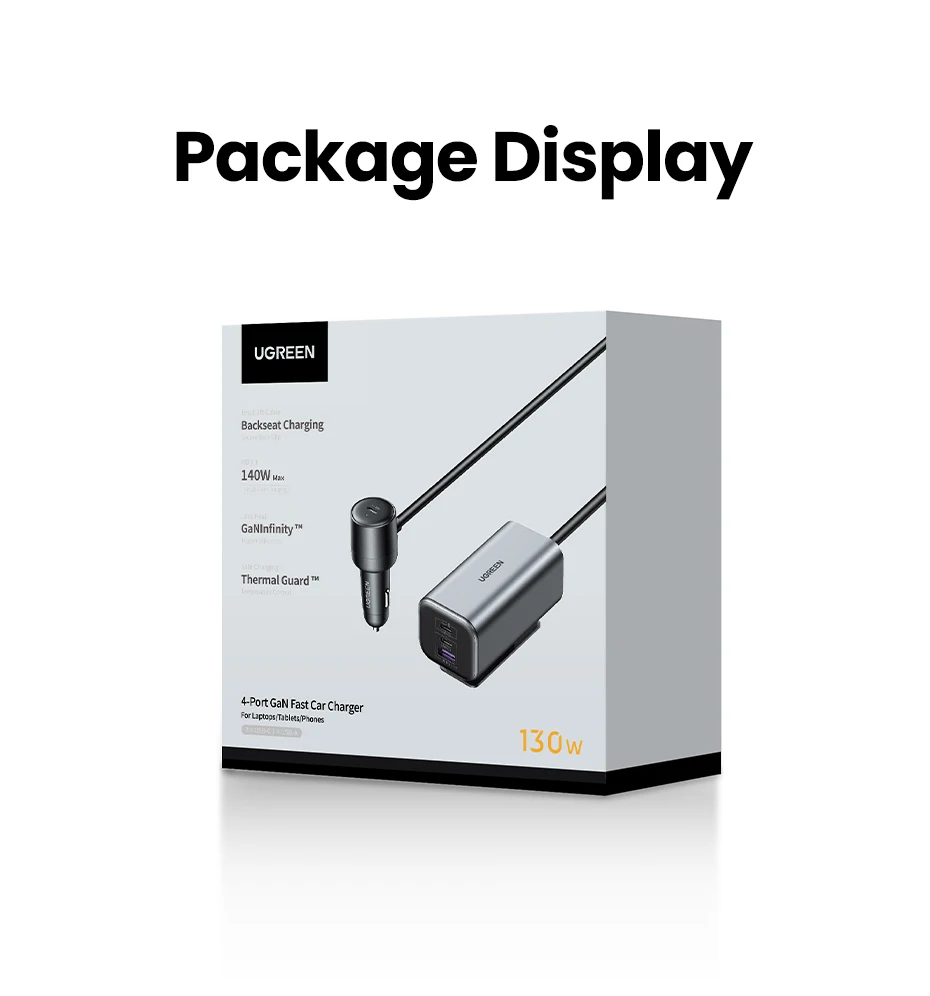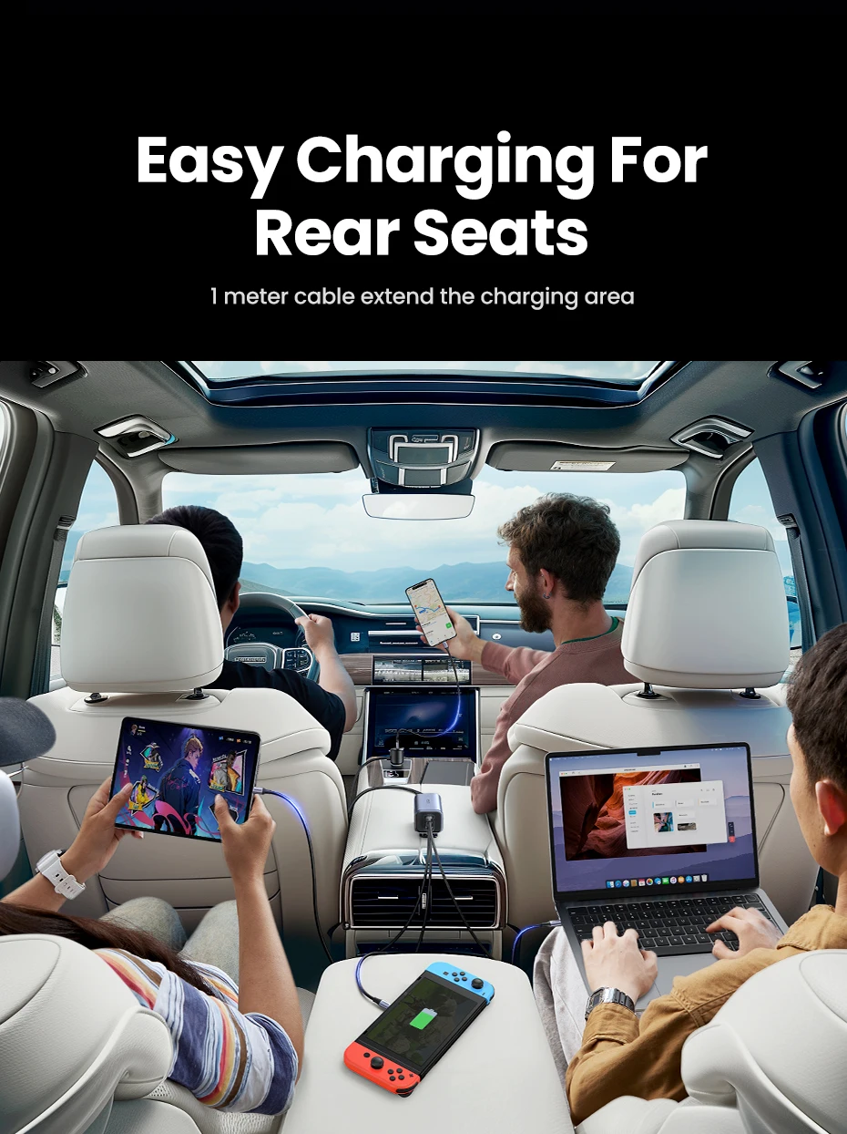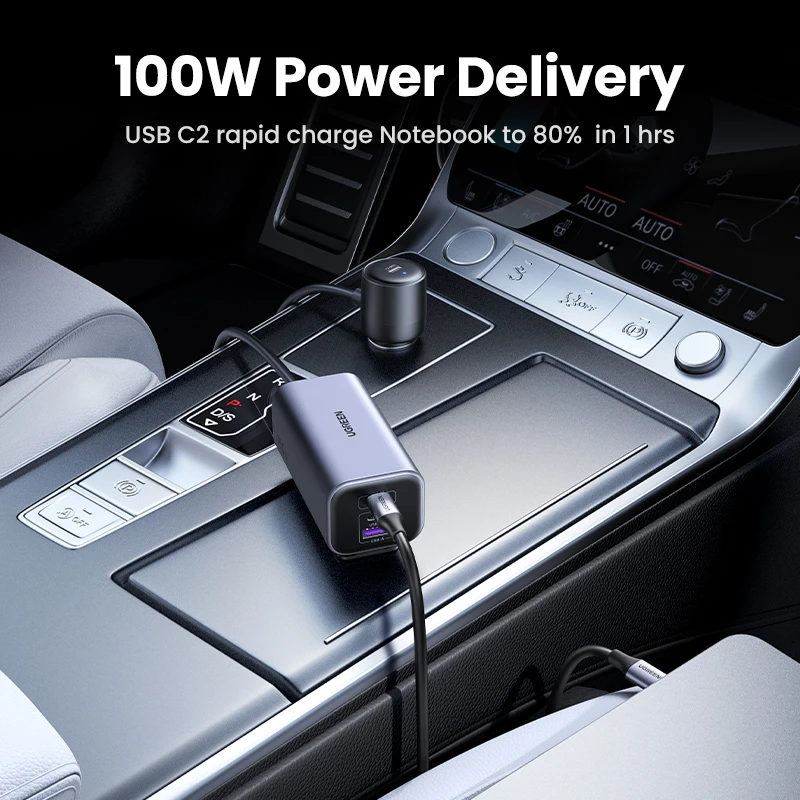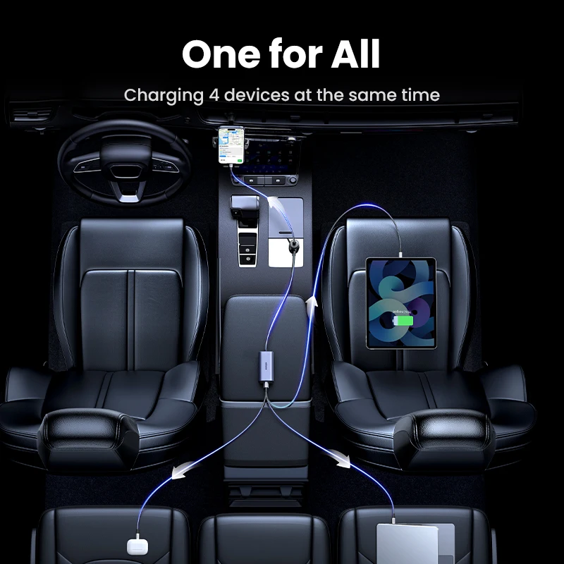 UGREEN Car Charger 130W Fast Charge Extender 4 USB Devices GaN Charger for iPhone 17 16 USB C Charger for iPad Notebook