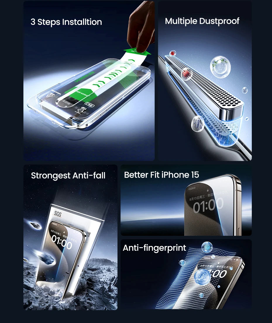 3. Both 2 types of UGREEN protective glass have the advantages of high definition, anti-fingerprint, and anti-drop.