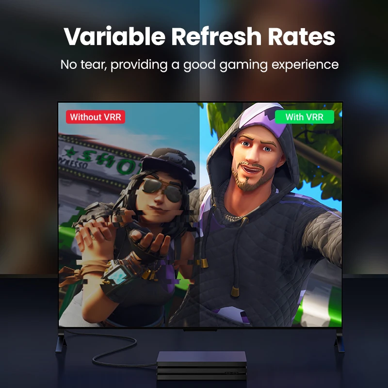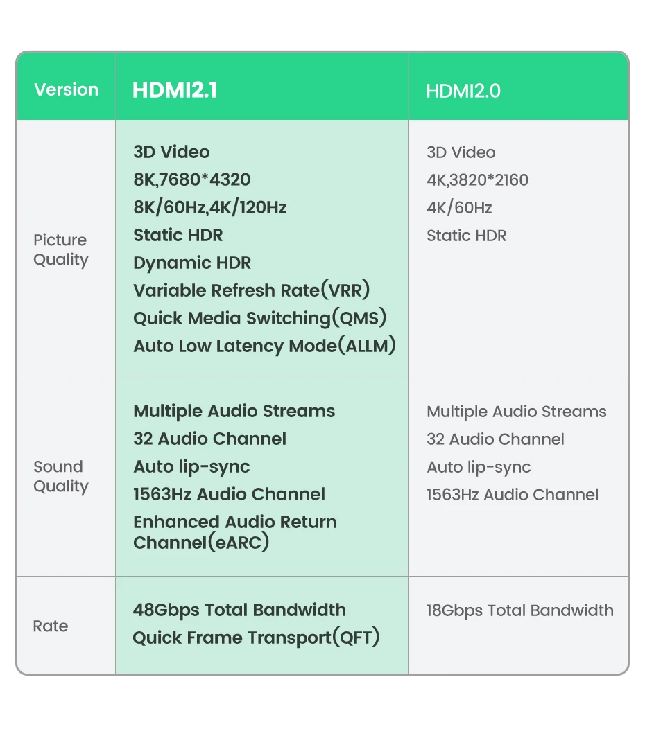 48Gbps bandwidth for latest features HDR, HDCP 2.2 & 2.3, DTS:X, Dolby Atmos, Dolby Vision. It supports 3D Video Display, Dynamic HDR, eARC, ALLM, QFT, QMS, and VRR. Enhance every moment for depth, detail,  and brightness,  and enjoy the ultra-high definition experience of the big screen.
