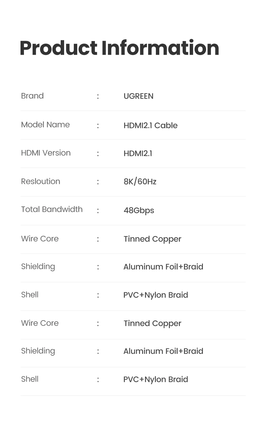 UGREEN HDMI-Compatible 2.1 Cable Ultra High-speed 8K/60Hz 4K/120Hz for Xiaomi Mi Box PS5 Dolby Vision 48Gbps HDMI-Compatible 8K