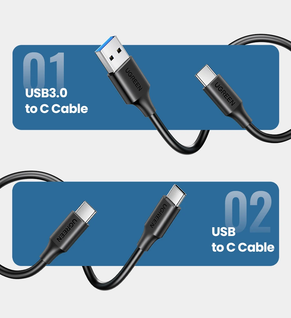 Comes with 33cm C to C cable and C to USB 3.0 Cable