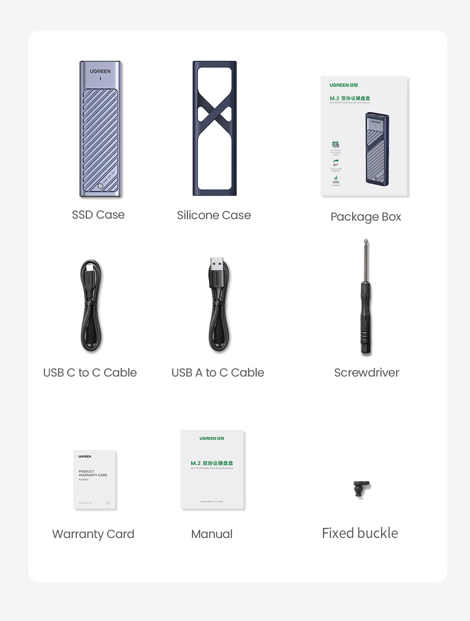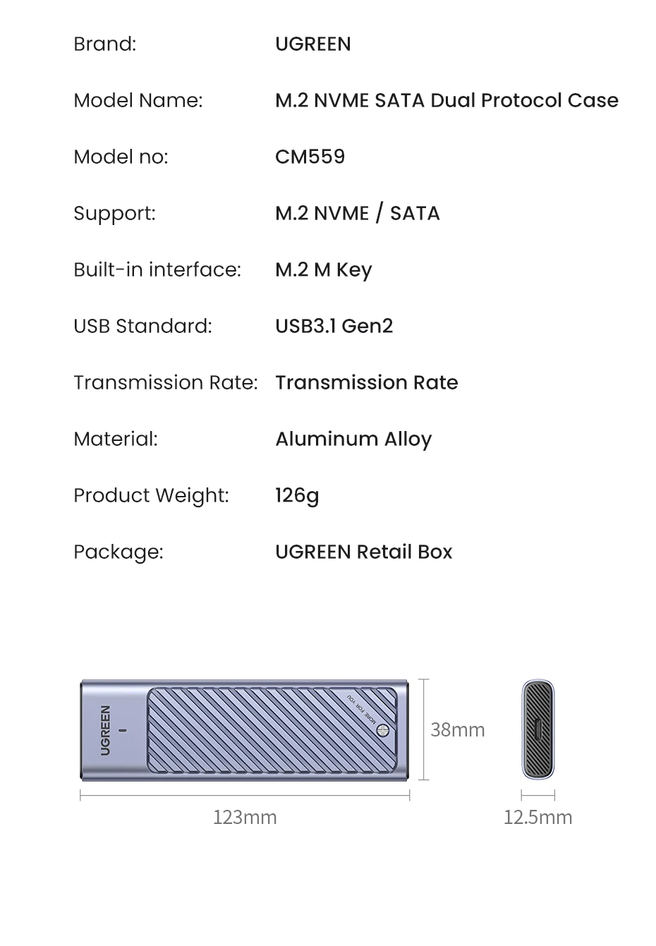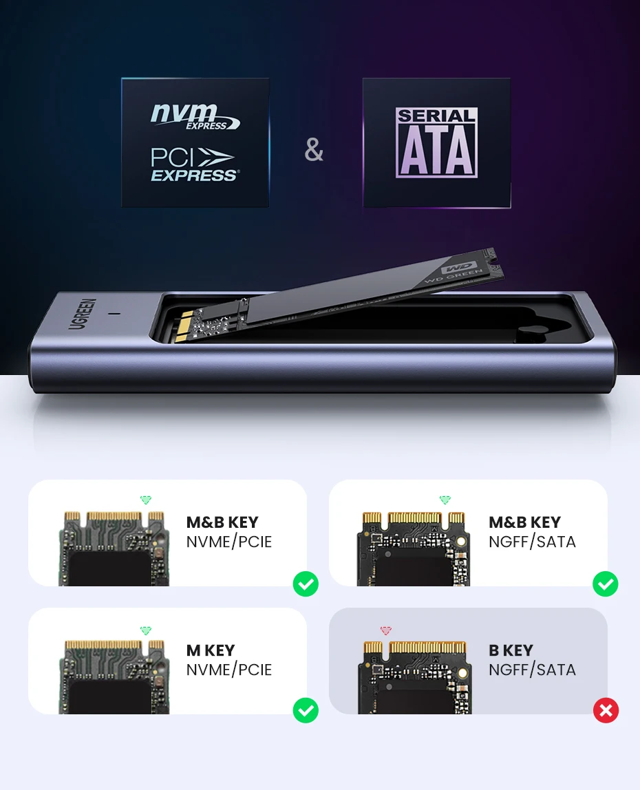 UGREEN M2 SSD Case M.2 NVMe 5Gbps USB C 3.2 Gen2 SSD Enclosure Tool-Free External SSD Adapter M and B&M Keys