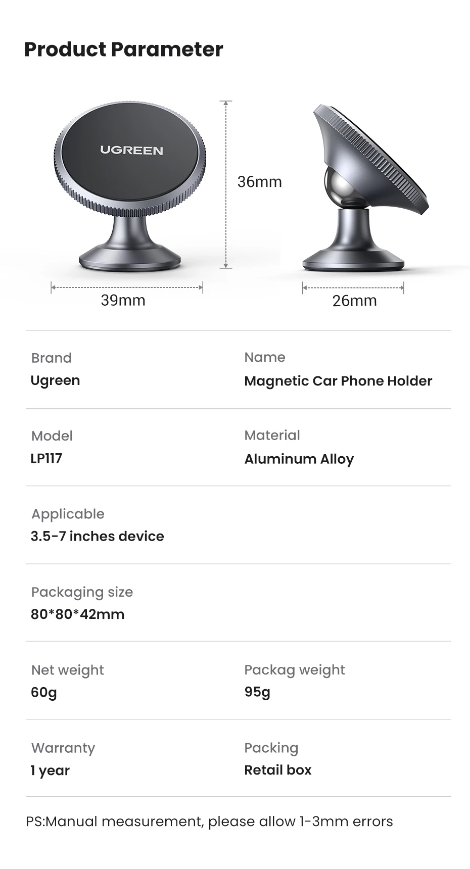 UGREEN Magnetic Car Phone Holder for iPhone 16 15 14 Pro Max Samsung Xiaomi Car Holder for Phone Dashboard Phone Holder Stand