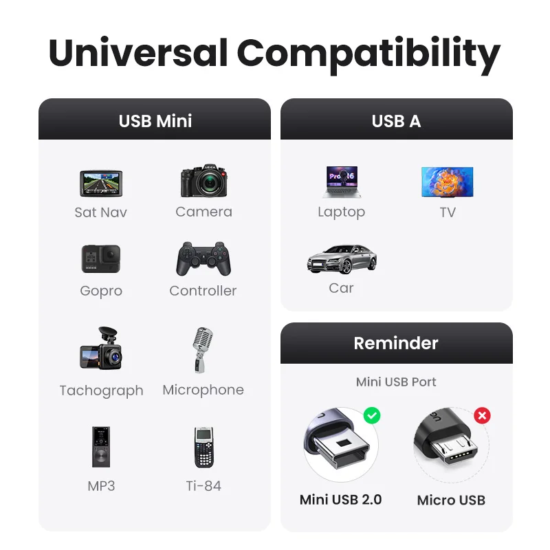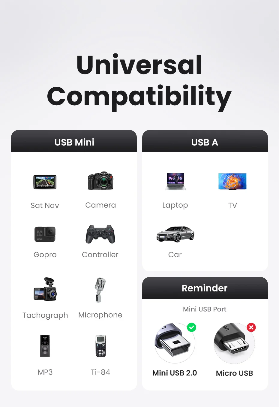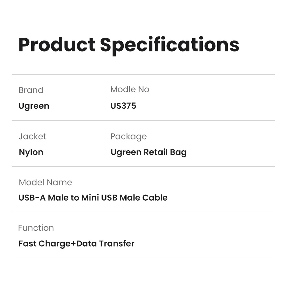 Ugreen Mini USB Cable Mini USB to USB Fast Data Charger Cable for MP3 MP4 Player Car DVR GPS Digital Camera HDD Mini USB