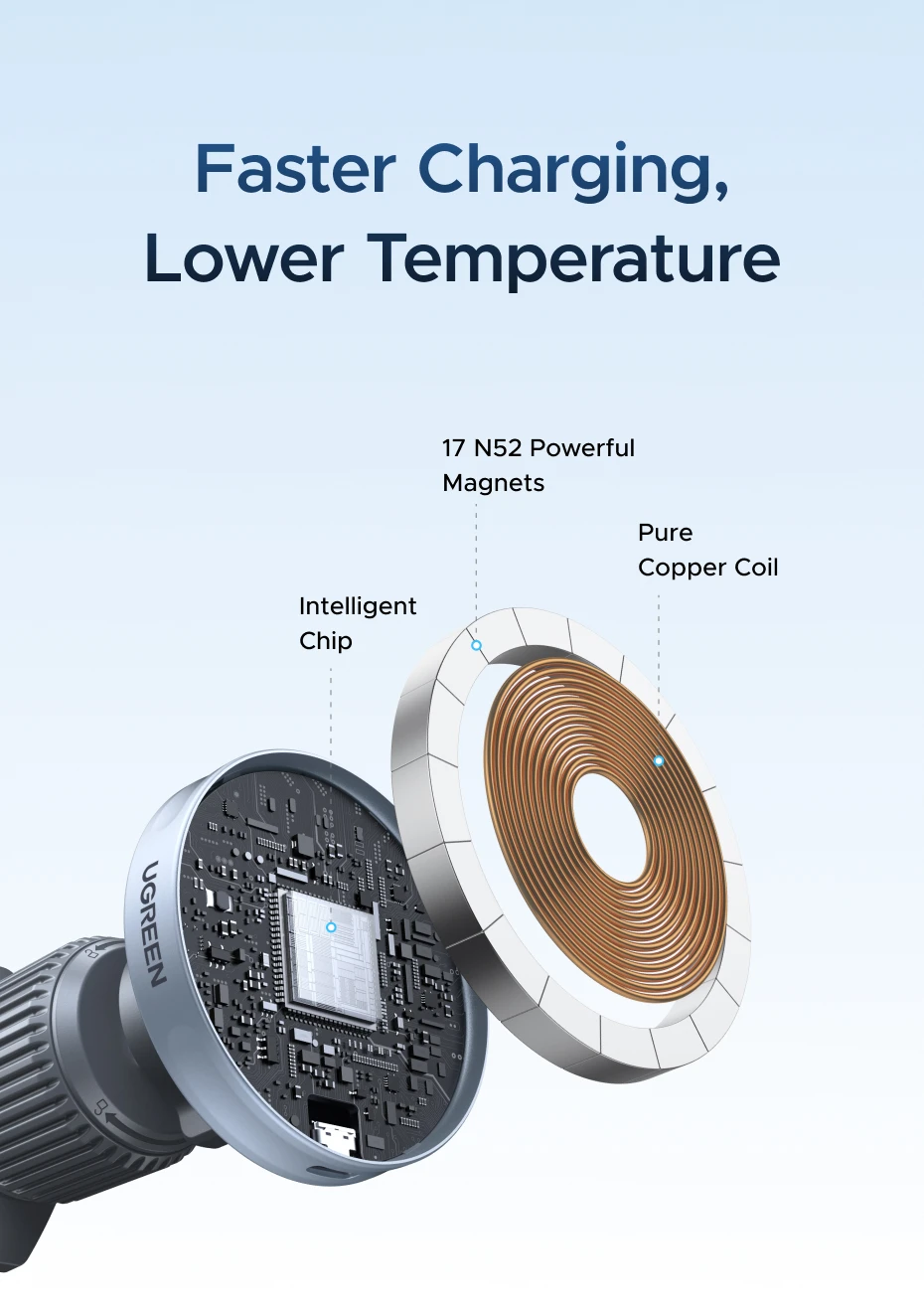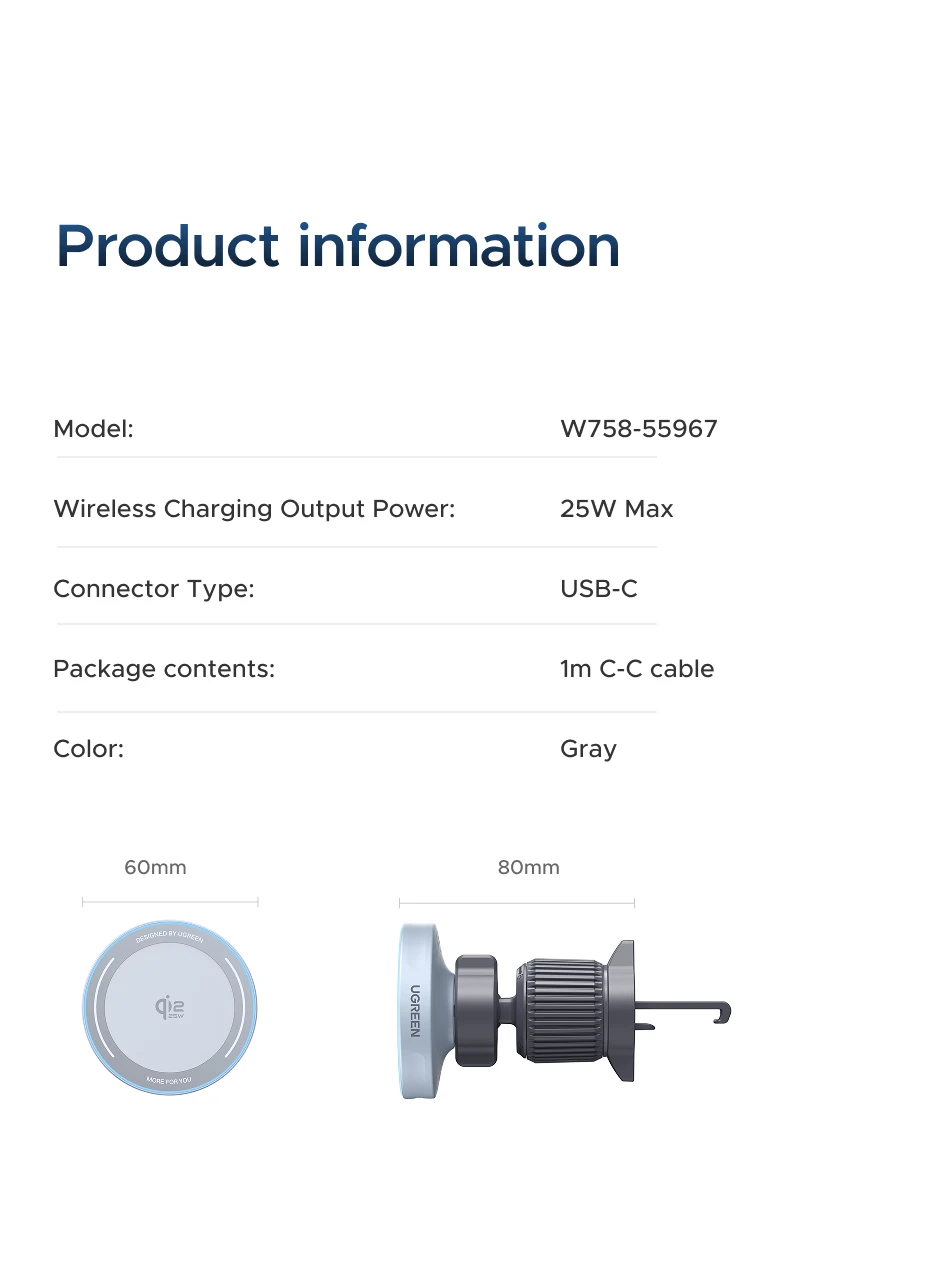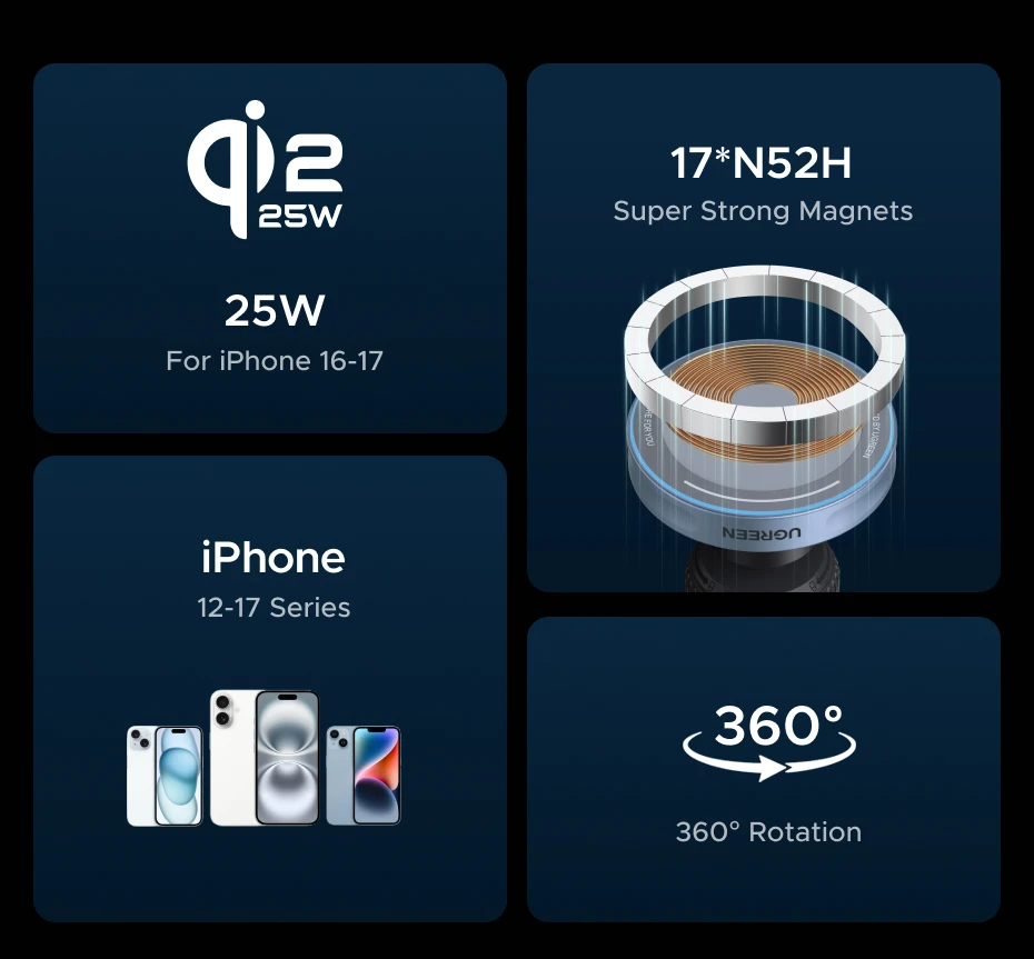 UGREEN Qi2 25W 15W Magnetic Car Phone Holder Wireless Charger Stand For iPhone 17 16 15 Pro Max Charging for Magsafe Car Charger