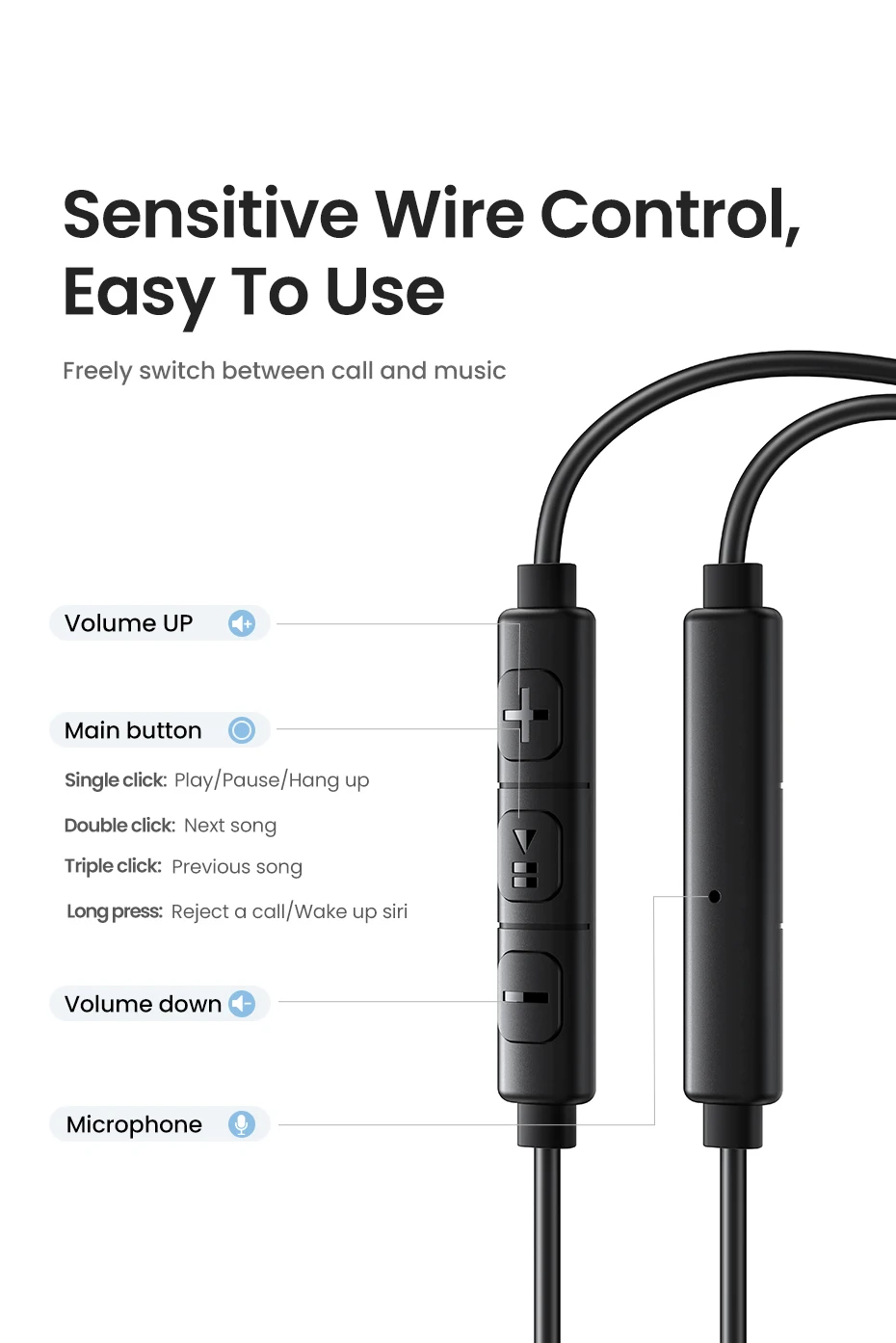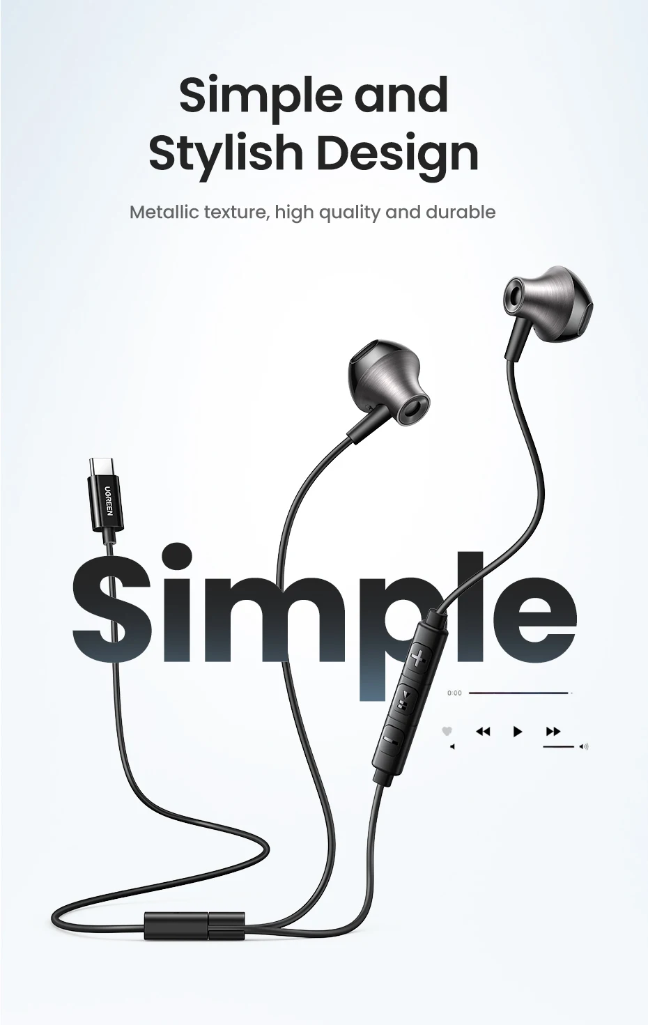 UGREEN Semi-open 3.5mm USB Type C Wired Earbuds with Microphone, Wired Earphones Headphones HiFi Stereo,For Most with 3.5mm Jack