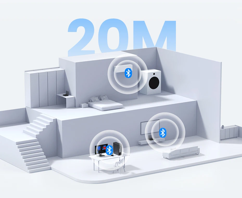 Tips:Connect 5 devices wireless via Bluetooth 5.0 dongle at the same time, but music streams to only 1 audio device at a time.