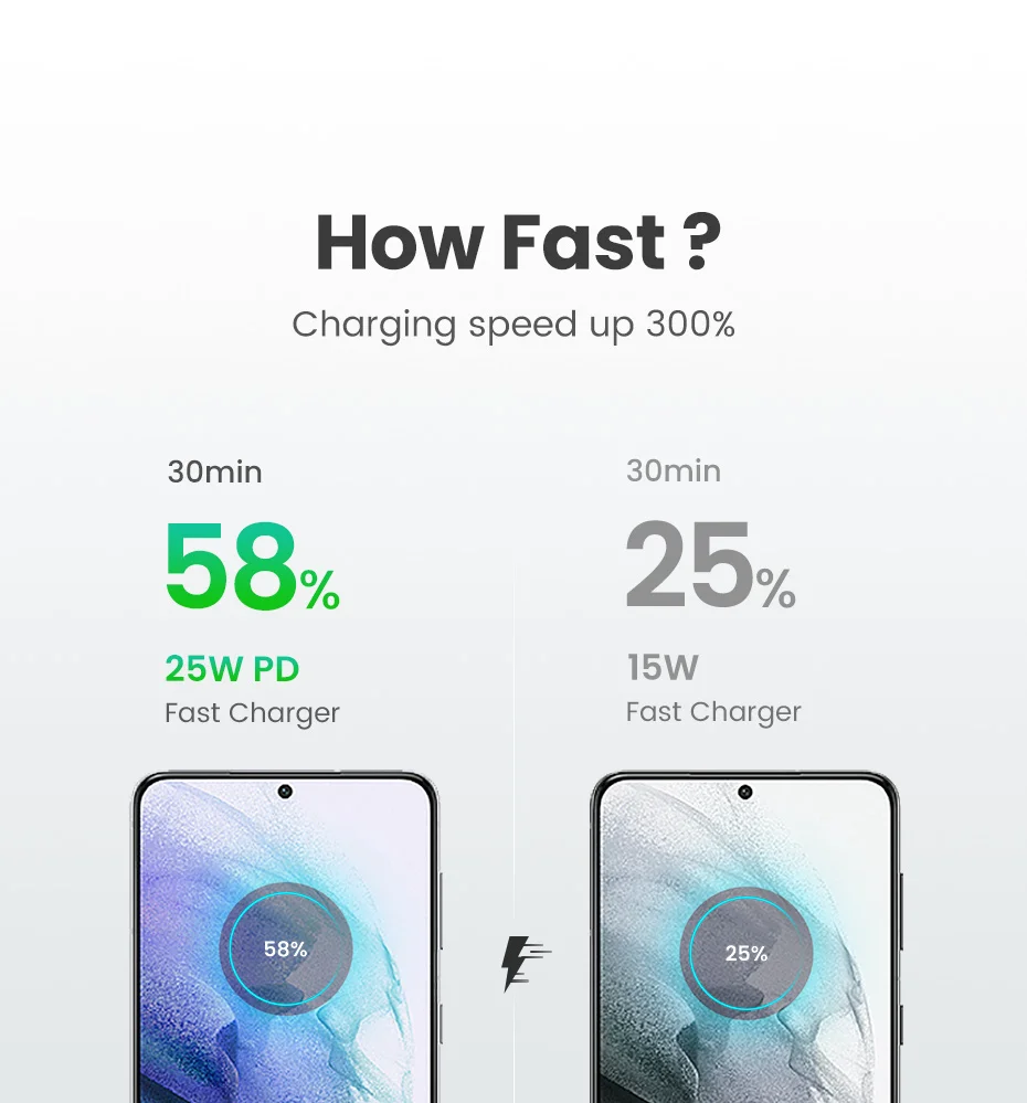 UGREEN USB C Charger 25W Support Type C PD Fast Charging Portable Phone Charger For Samsung S20 S21 Ultra Xiaomi 10 Pro Tablet
