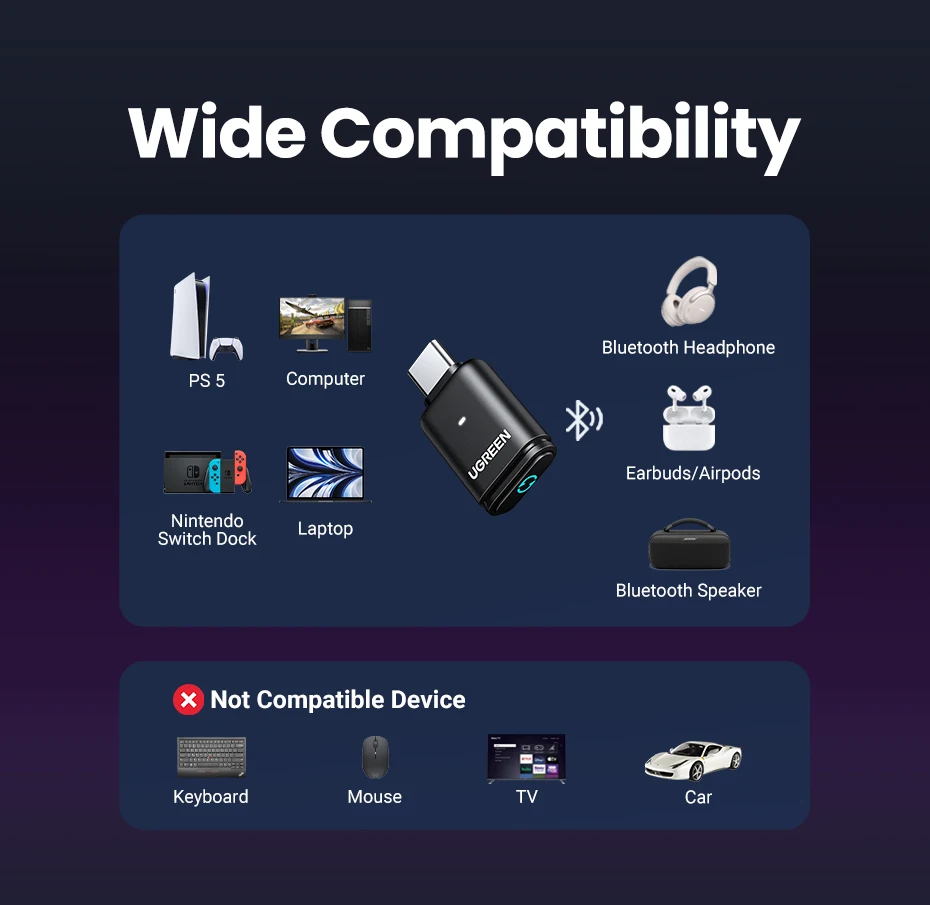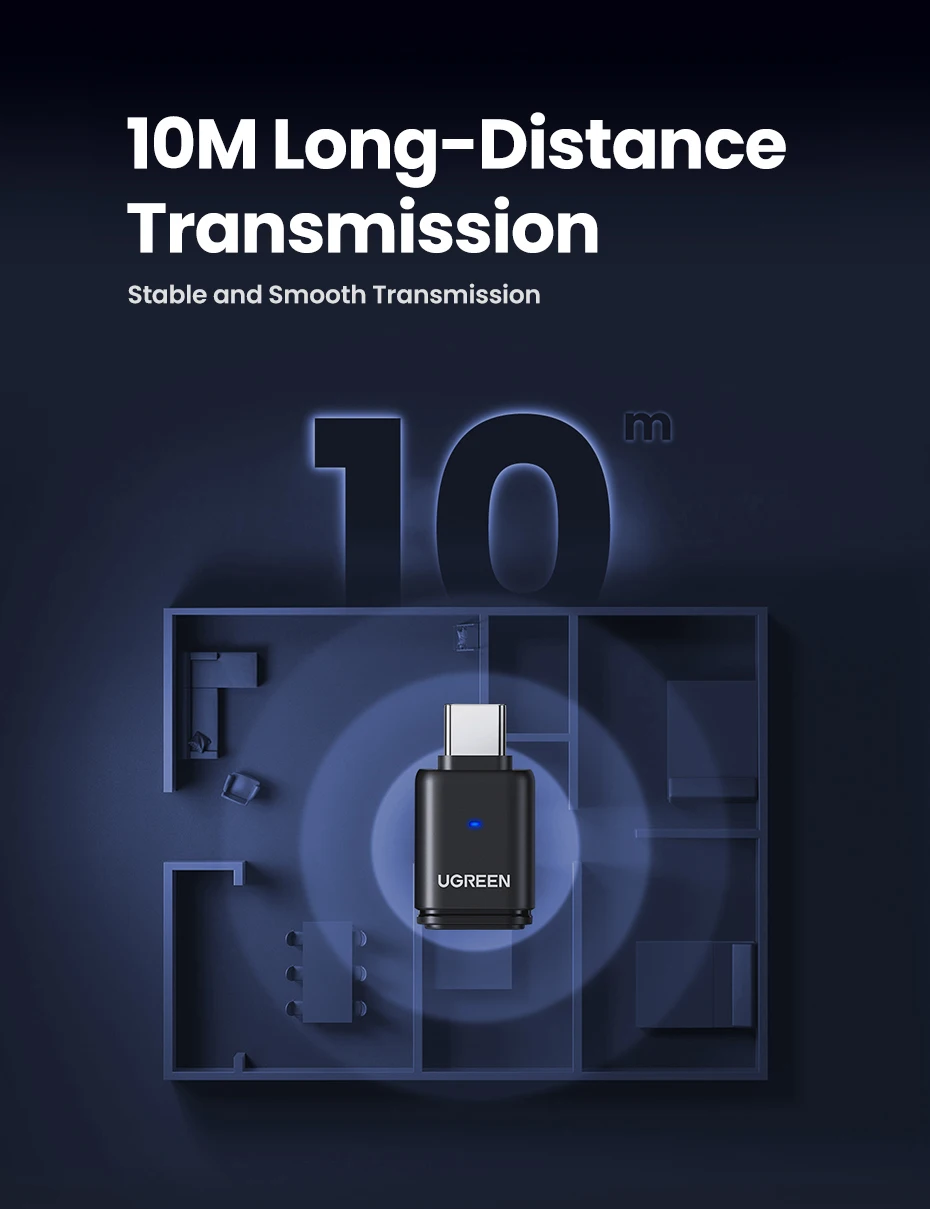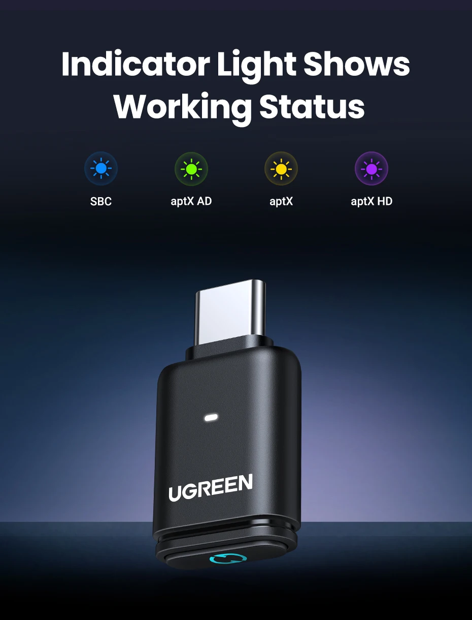 UGREEN USB C Type-C Bluetooth 5.3 Transmitter aptX HD AD Audio Adapter for PC Nintendo Switch Headset Speaker Mic