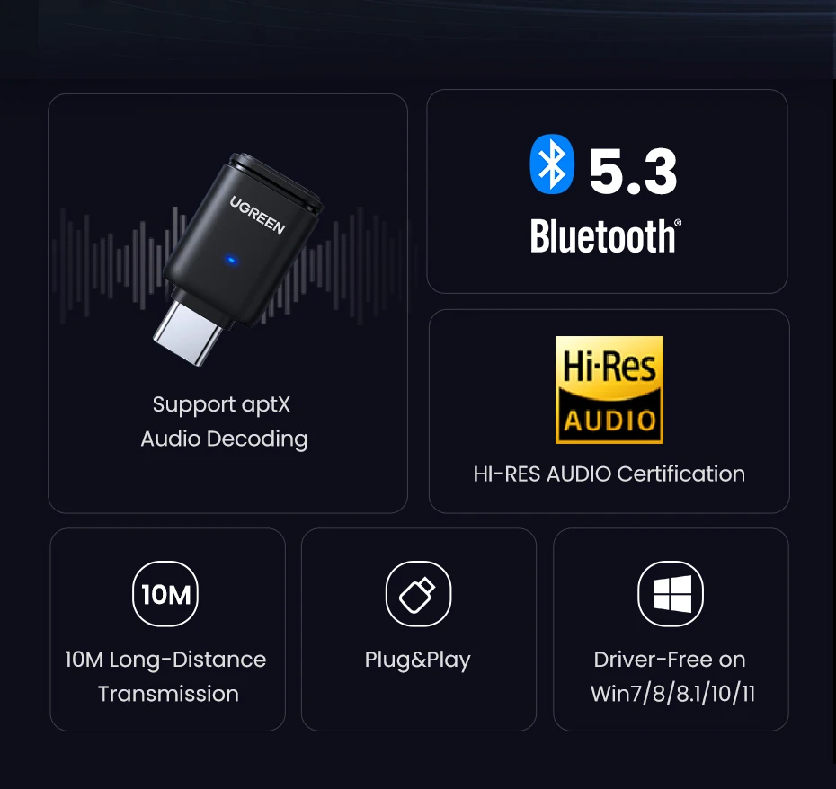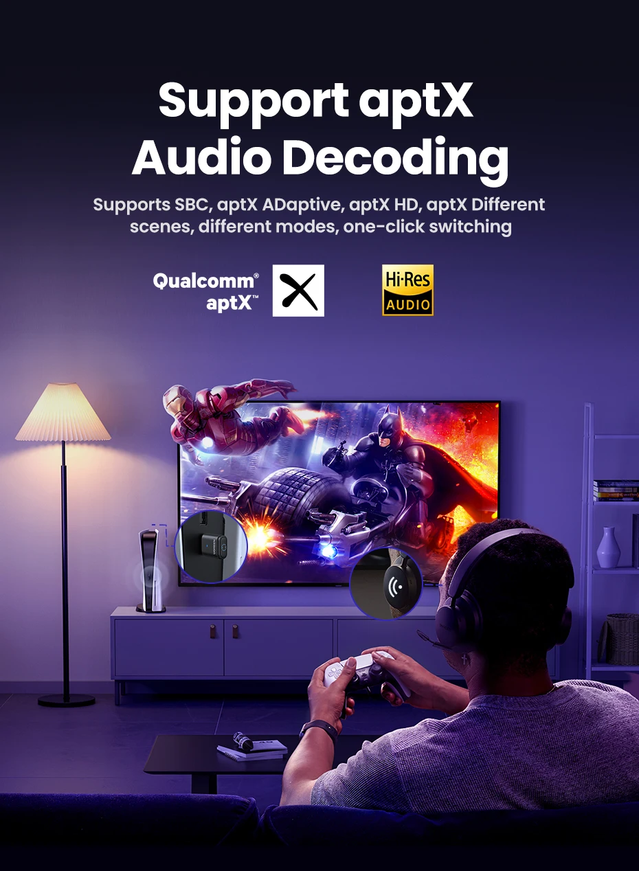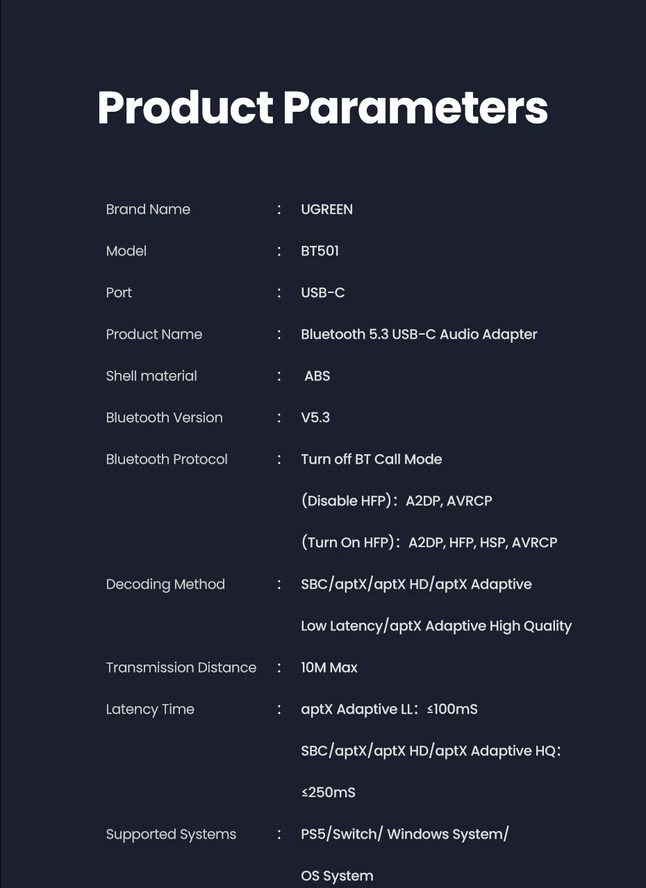 UGREEN USB C Type-C Bluetooth 5.3 Transmitter aptX HD AD Audio Adapter for PC Nintendo Switch Headset Speaker Mic