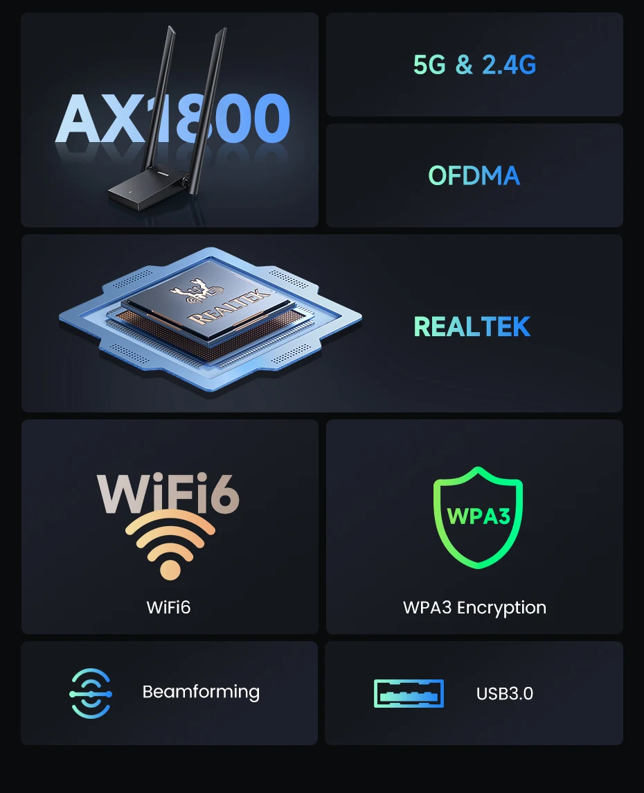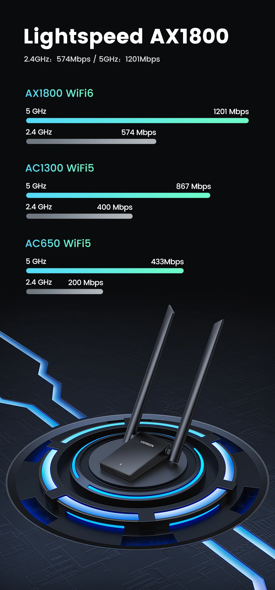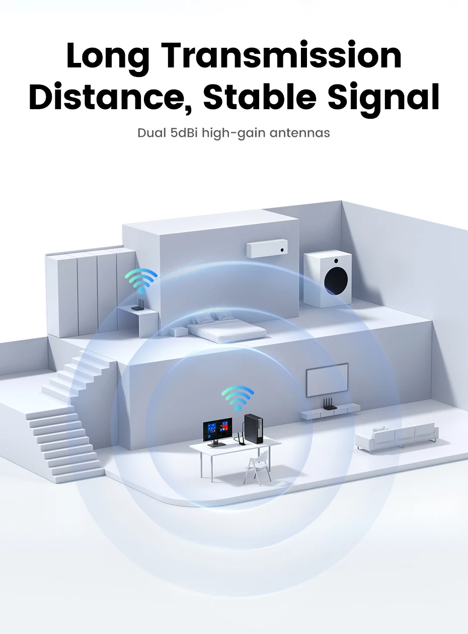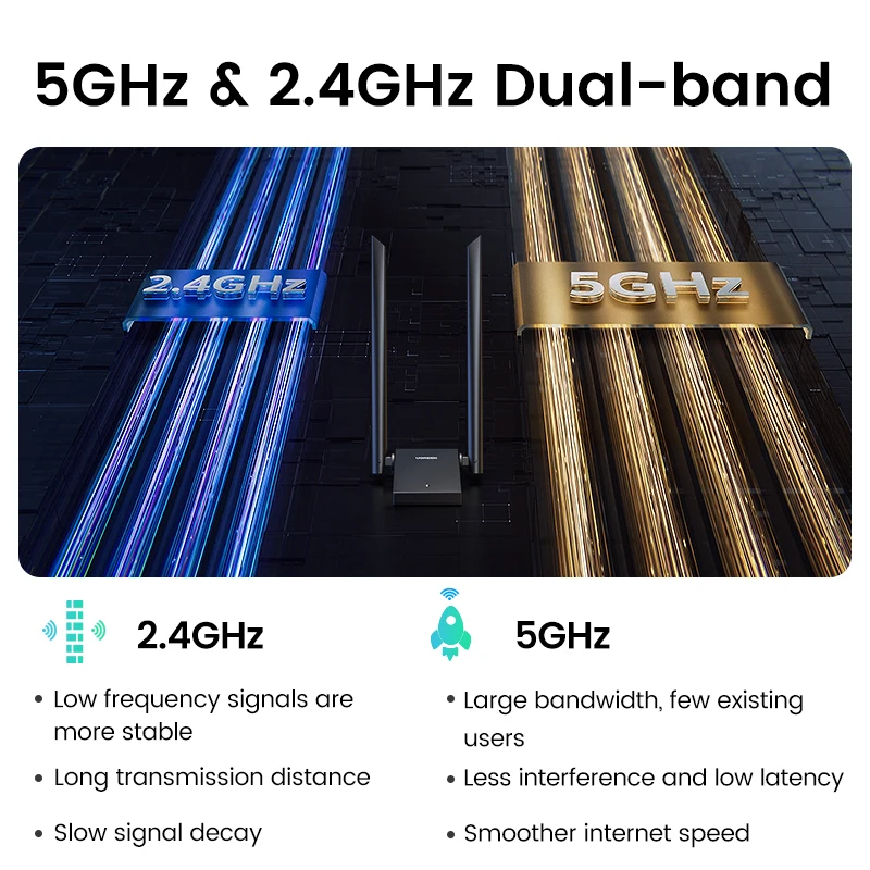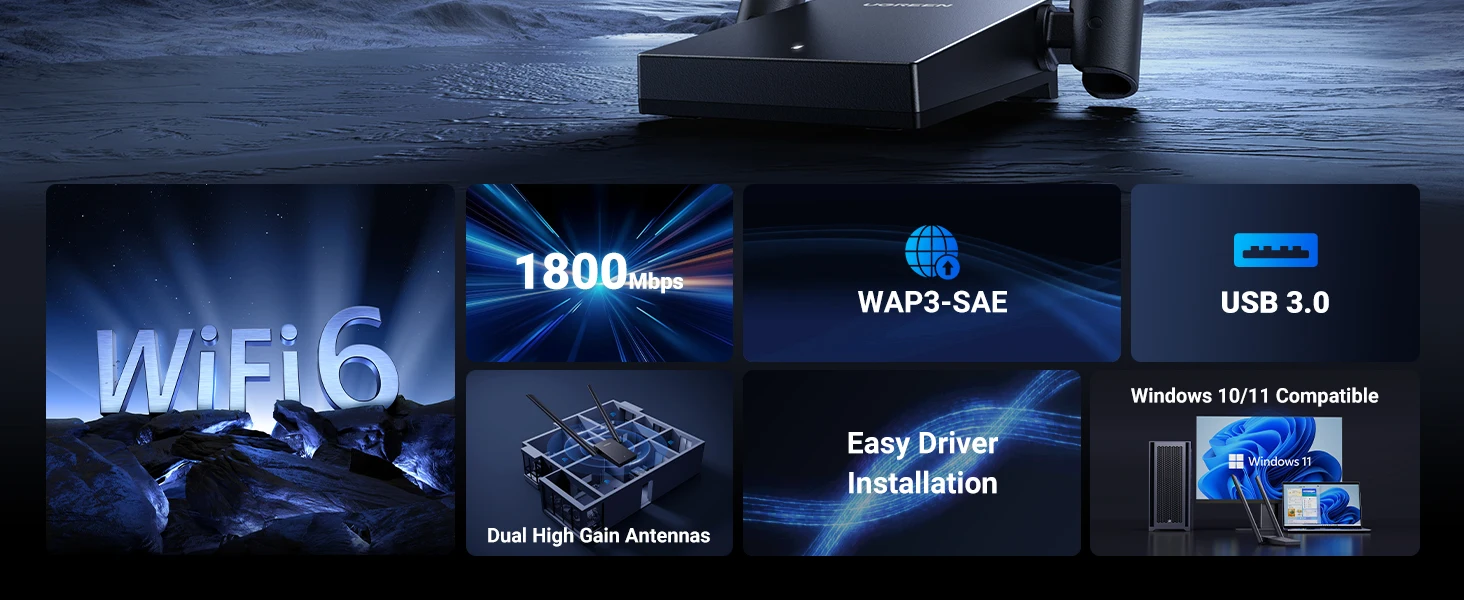 UGREEN WiFi Adapter AX1800 WiFi6 USB3.0 5G&2.4G Dual-Antenna USB WiFi for PC Laptop Wifi Antenna USB Ethernet Receiver Network