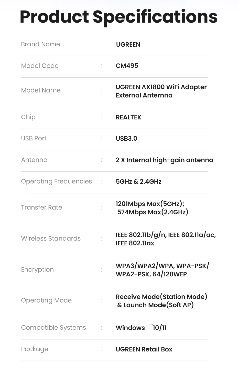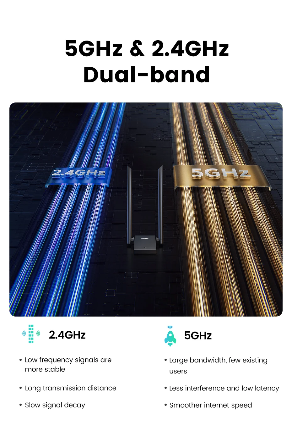 - Operating Frequency Band: 5GHz & 2.4GHz