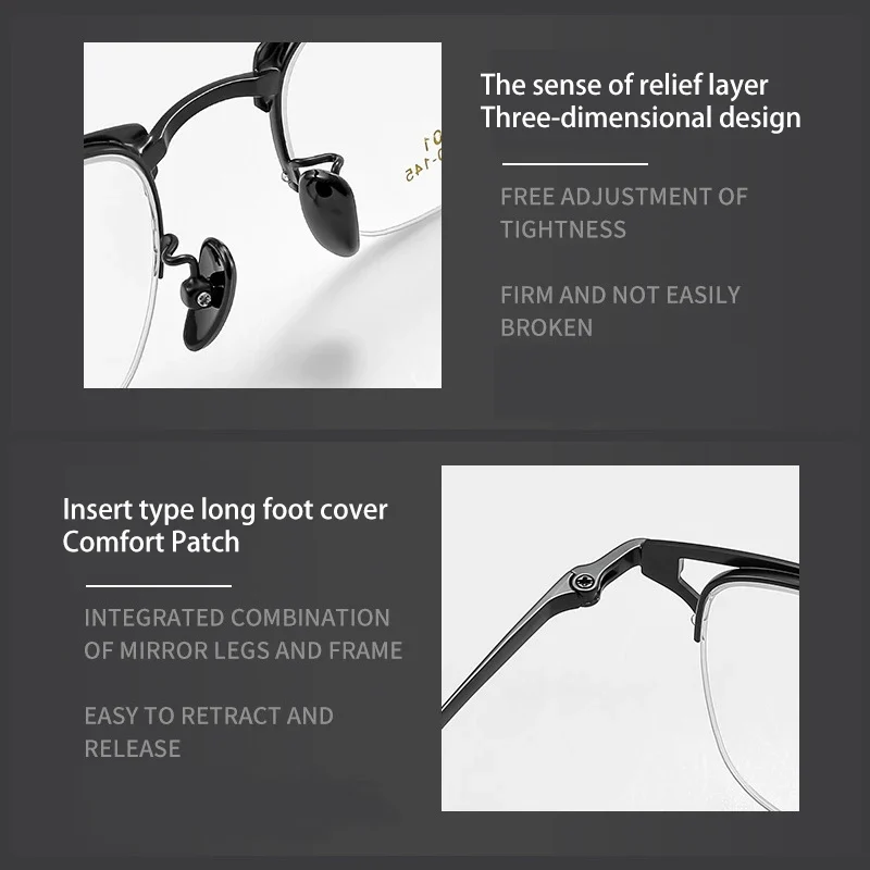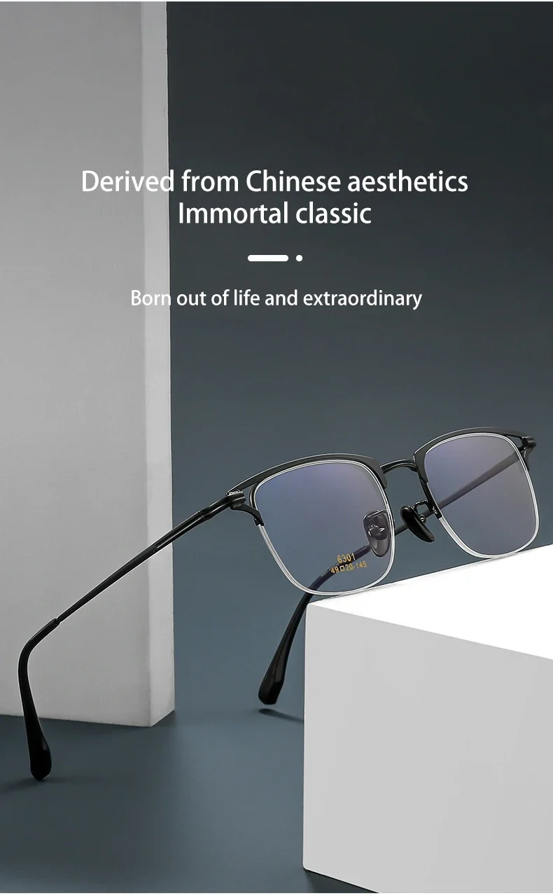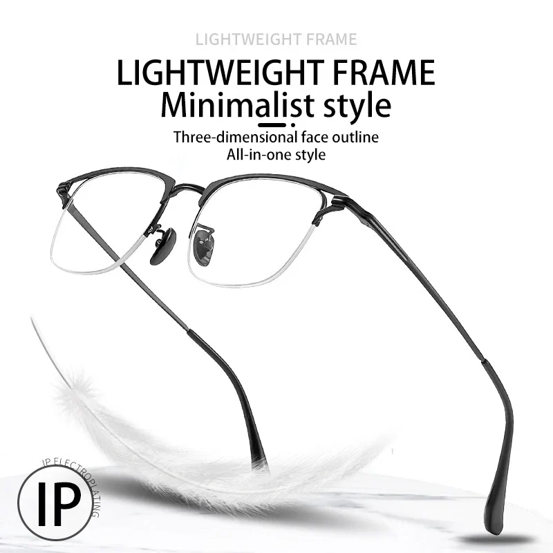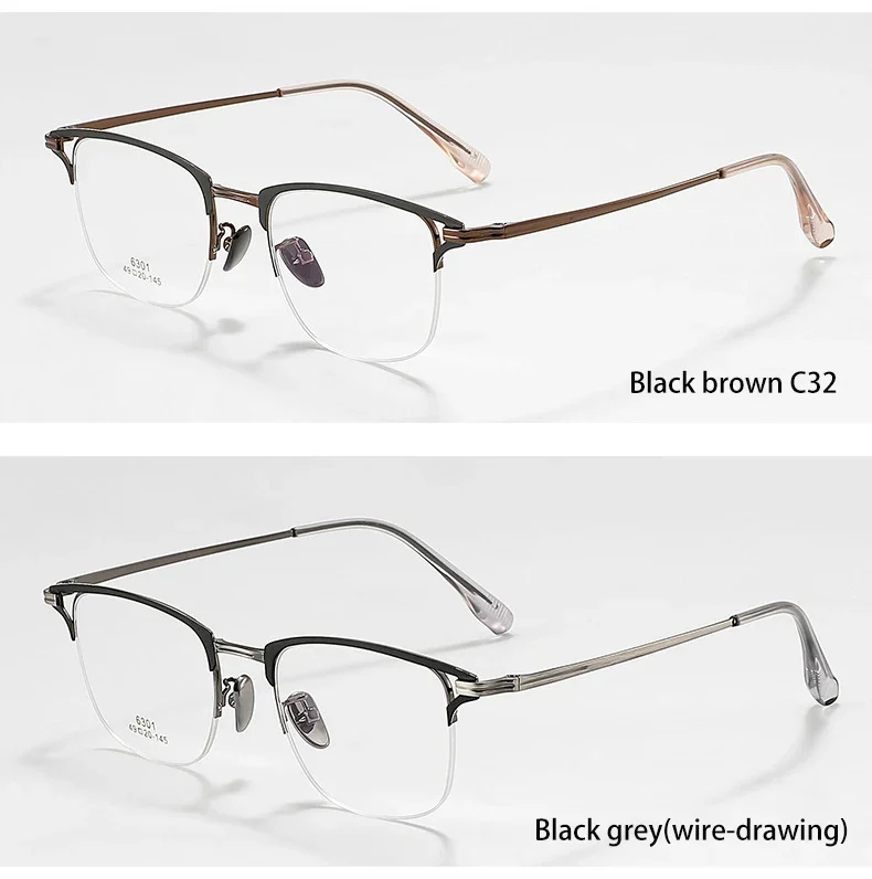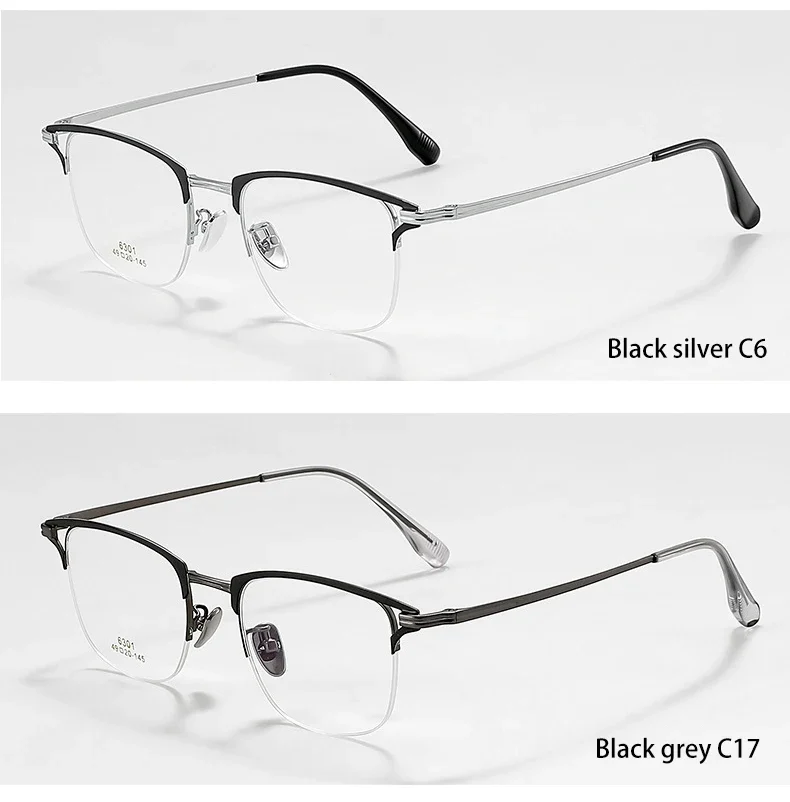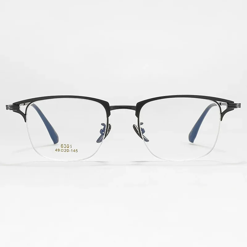 VICKY Business Half-rimmed Glasses Men’s Retro Square Metal Glasses Can Be Customized Prescription Anti-blue Light Glasses 6301
