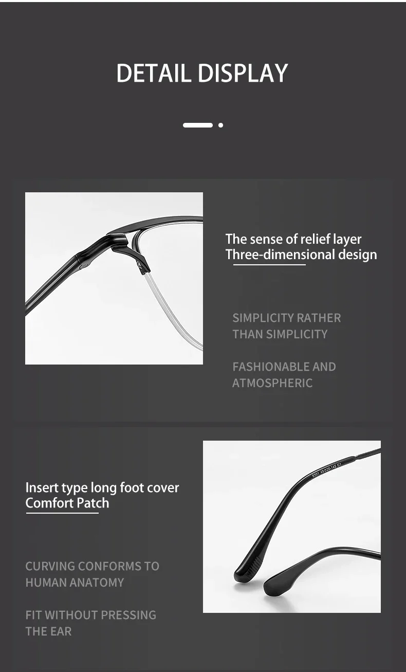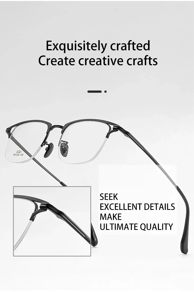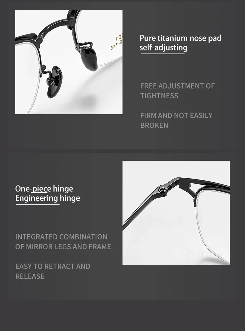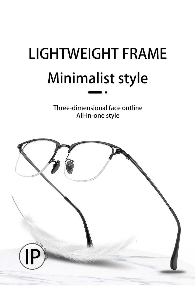 VICKY Business Half-rimmed Glasses Men’s Retro Square Metal Glasses Can Be Customized Prescription Anti-blue Light Glasses 6301