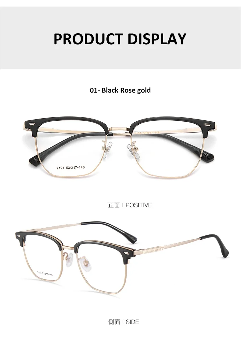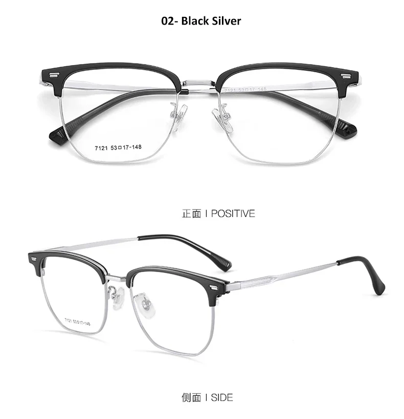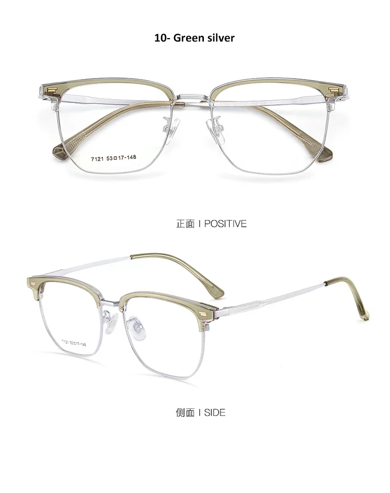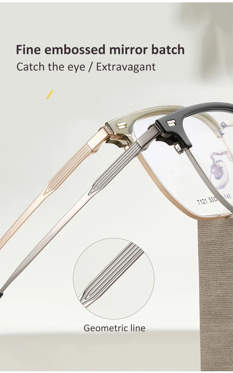 VICKY Business Half-rimmed Glasses Men’s Retro Square Metal Glasses Can Be Customized Prescription Anti-blue Light Glasses 6301