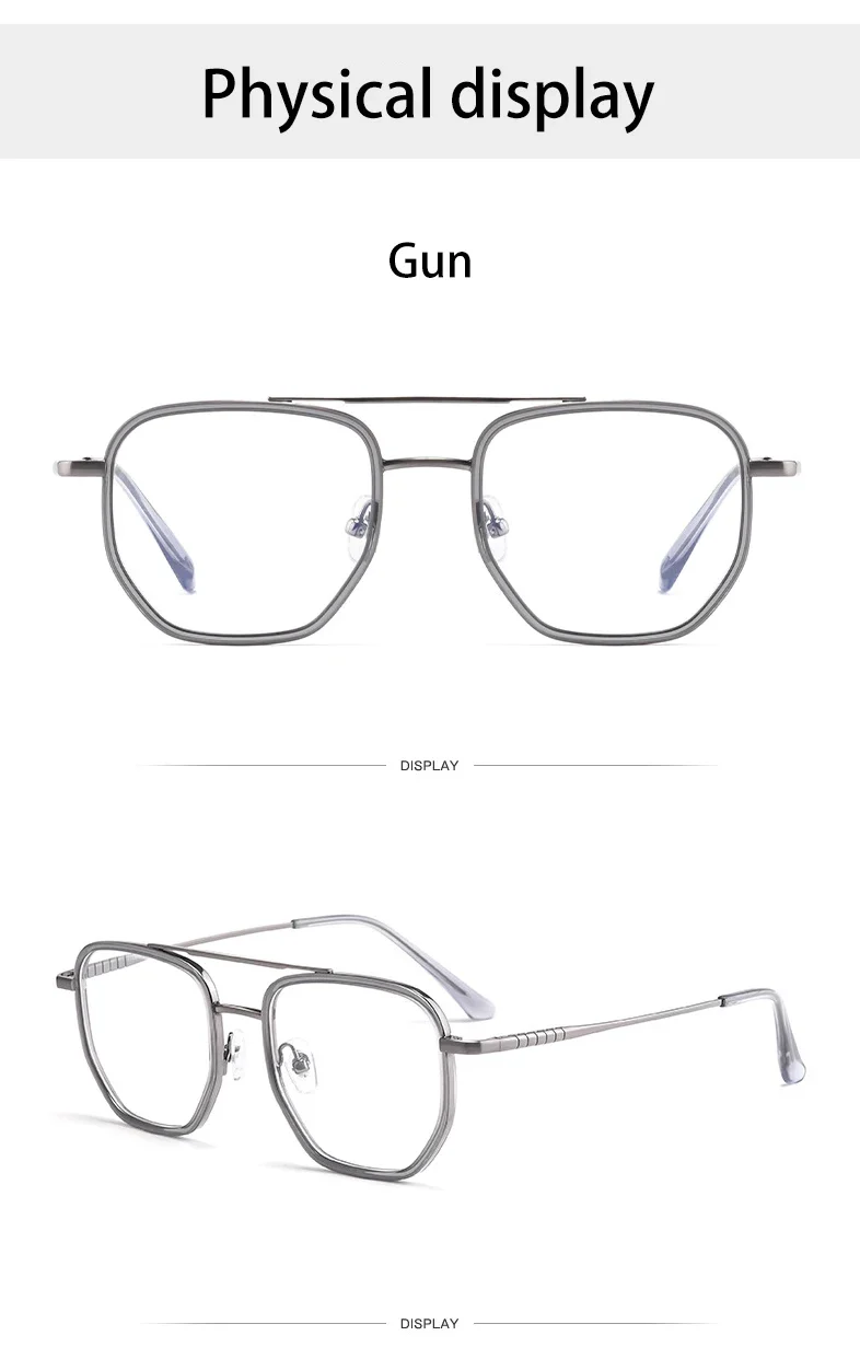 Geometric Pilot Oversize Double-Bridge Retro Frame Anti Blue Light Reading Glasses Men Ultra-Light Pure Titanium L1361