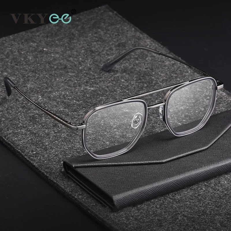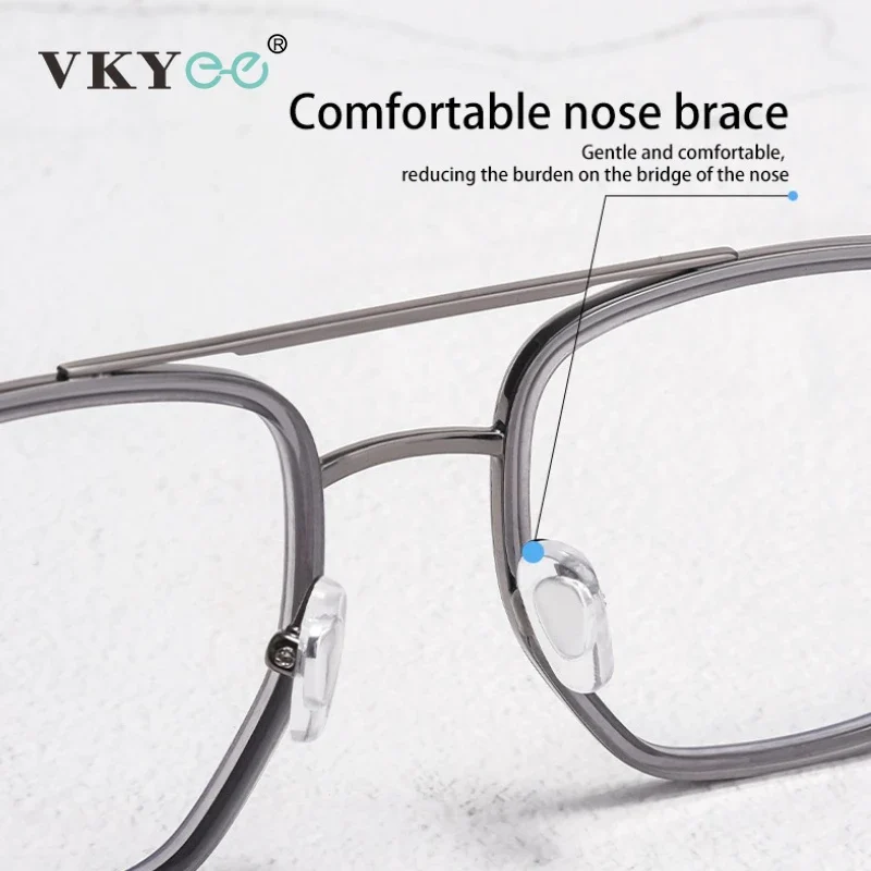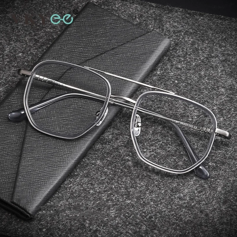 VICKY New Geometric Pilot Oversize Double-Bridge Retro Frame Anti Blue Light Reading Glasses Men Ultra-Light Pure Titanium L1361