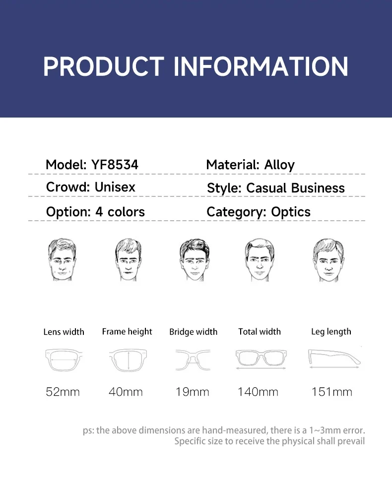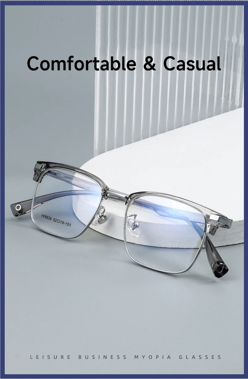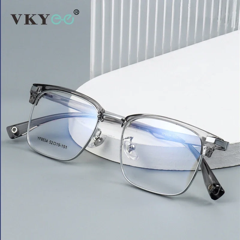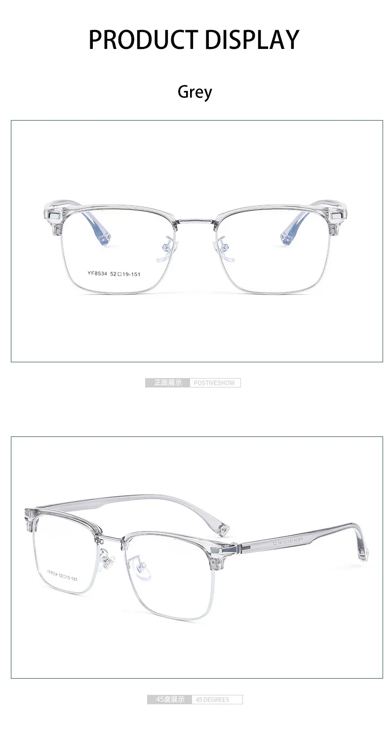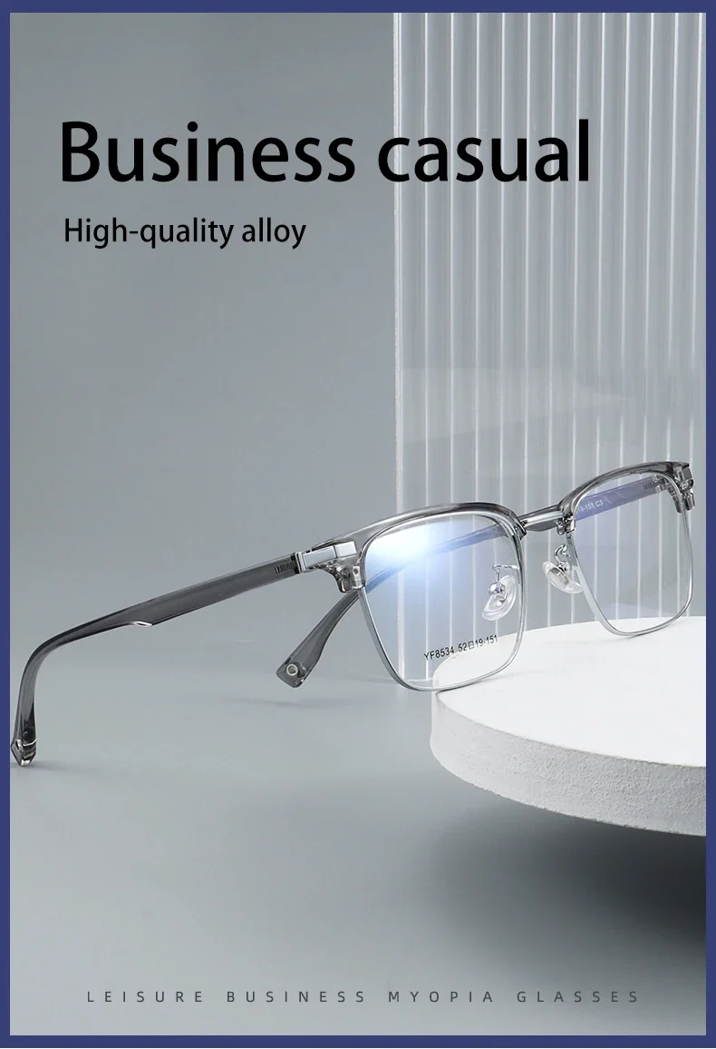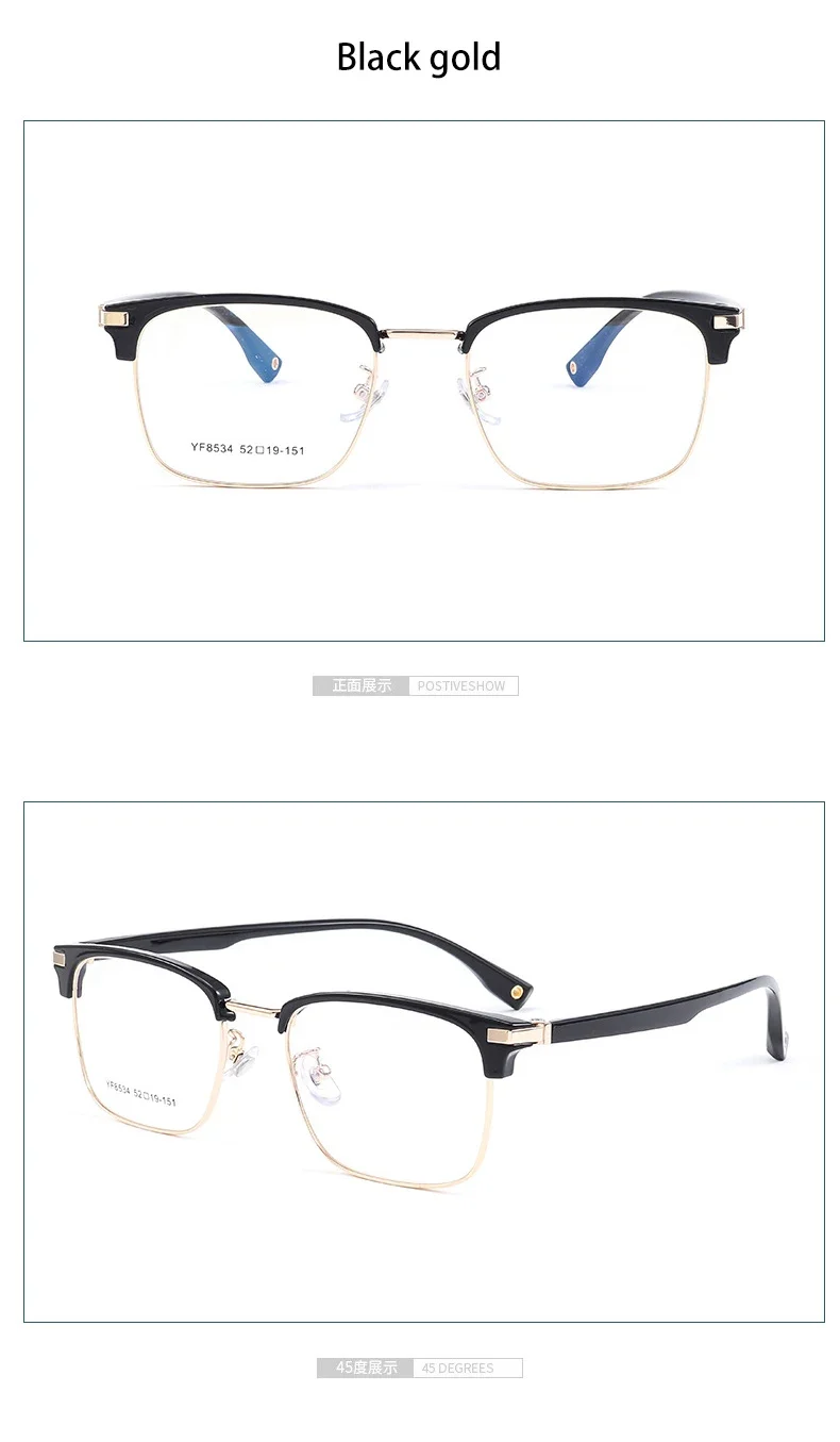 VICKY Business Half-rimmed Glasses Men’s Retro Square Metal Glasses Can Be Customized Prescription Anti-blue Light Glasses 6301