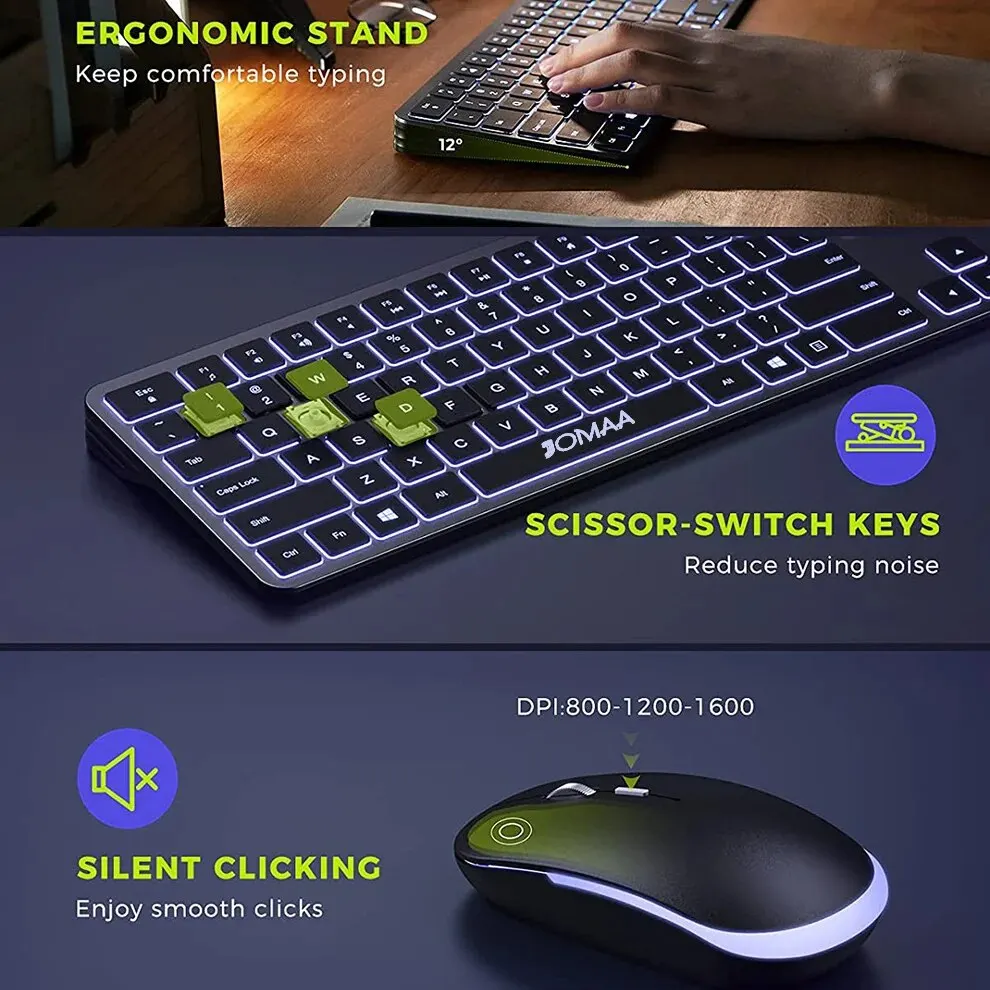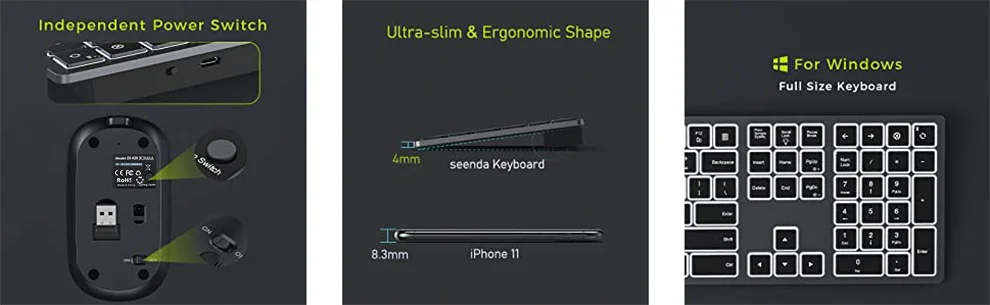 • seenda Slim Quiet Backlit Full-Size Rechargeable Keyboard and Mouse Combo
