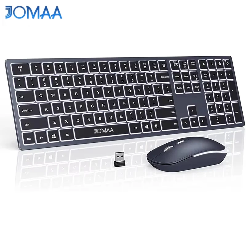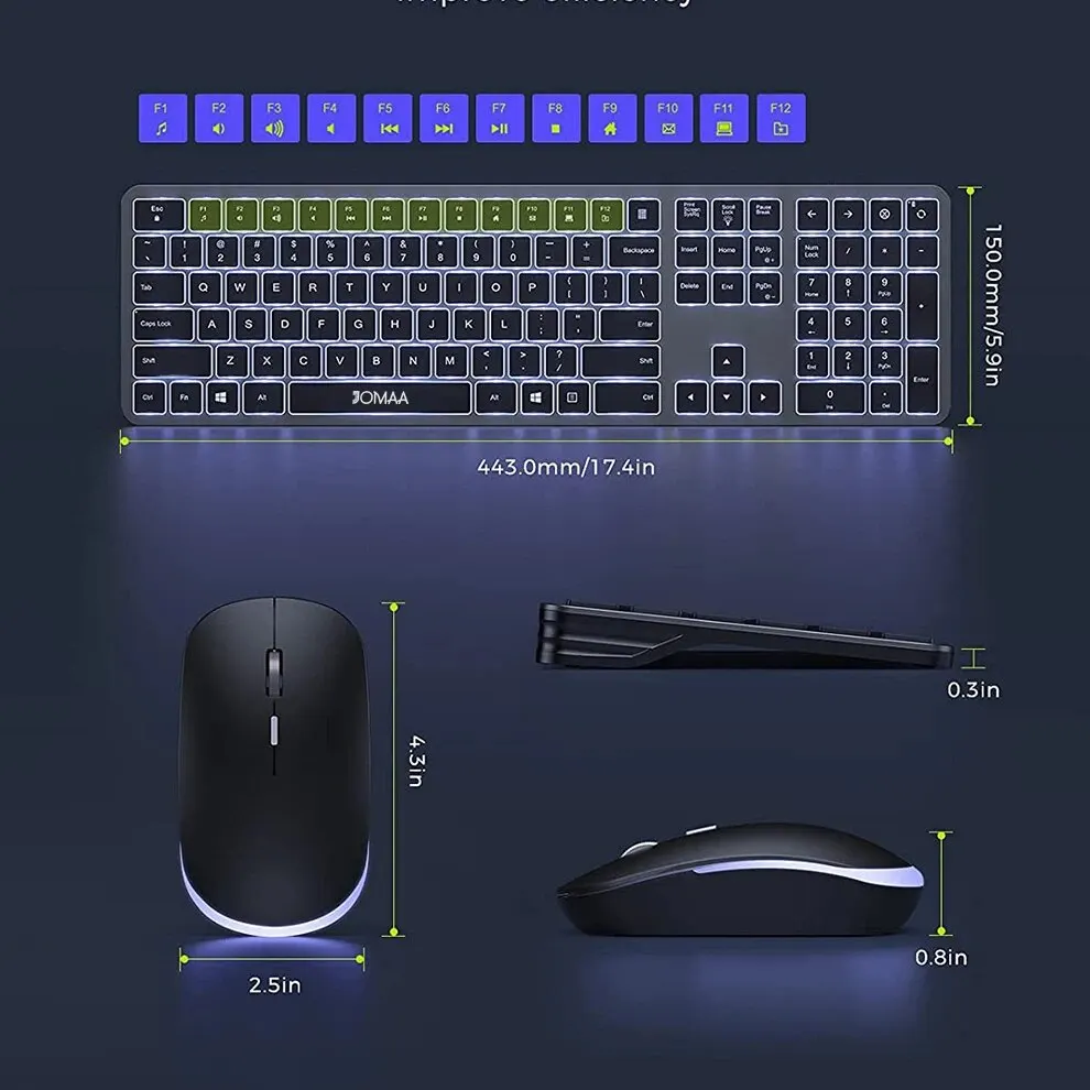 Wireless Ultra Slim Full Size Keyboard and Mouse Combo Rechargeable 2.4G USB Cordless Illuminated Keyboard & Mouse Set