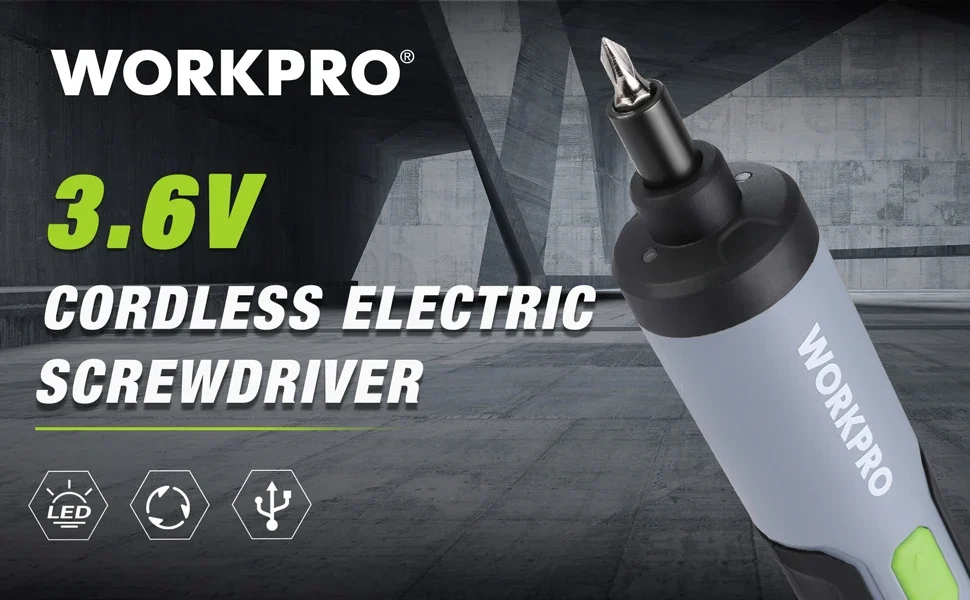 WORKPRO 3.6V Cordless Electric Screwdriver Kit, USB Rechargeable Lithium ion Battery, LED Work Light