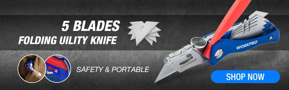 WORKPRO Heavy Duty Folding Knife Pipe Cutter Pocket Knife Wood Handle Knife with 10PCS Blades