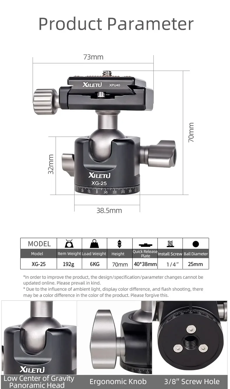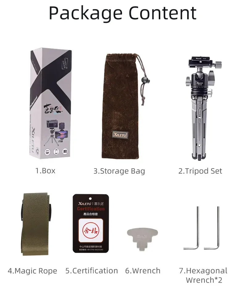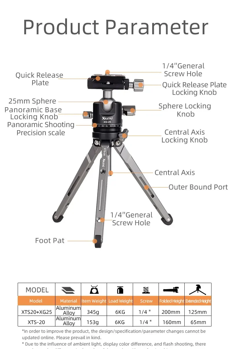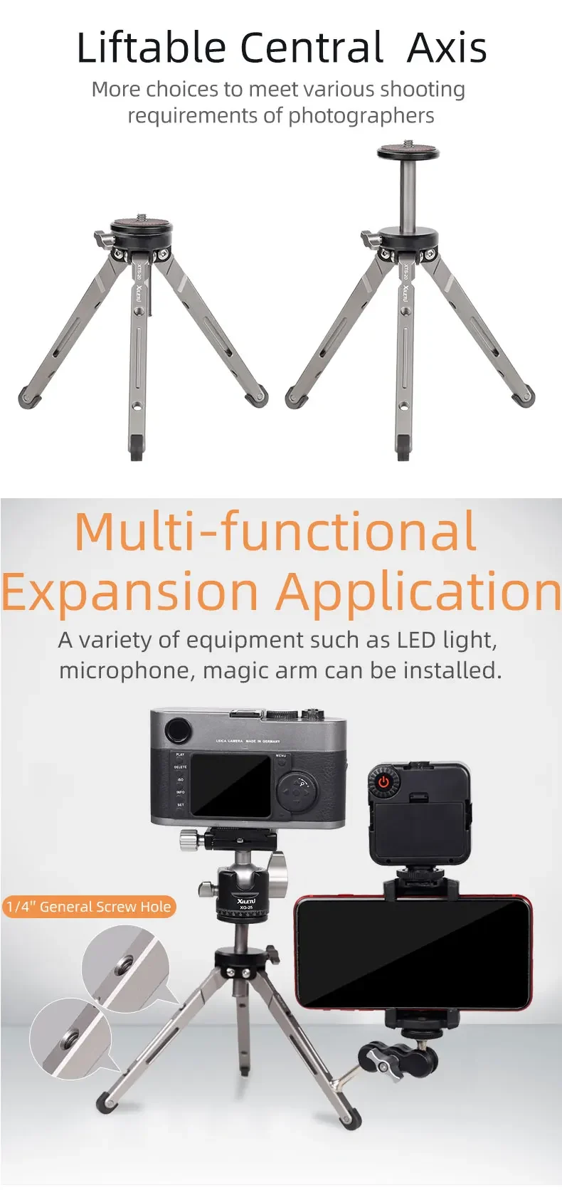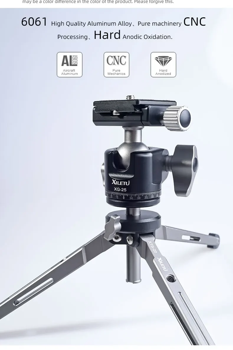 XIELTU XTS-20+XG-25 Mini Aluminum Tripod with Detachable Ball Head 360 Degree Rotation, Aluminum Alloy Tripod For GoPro DSLR