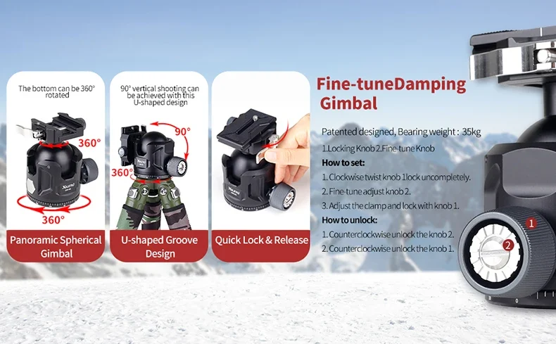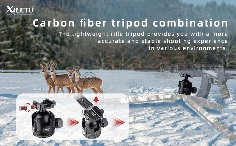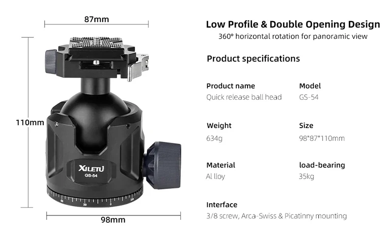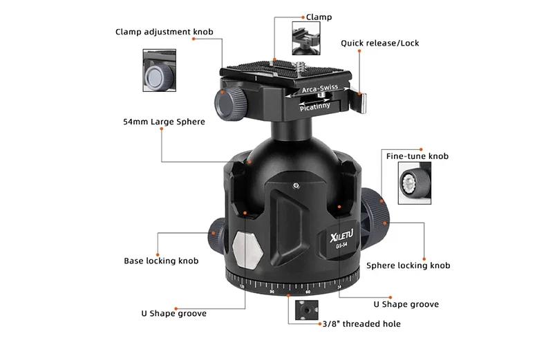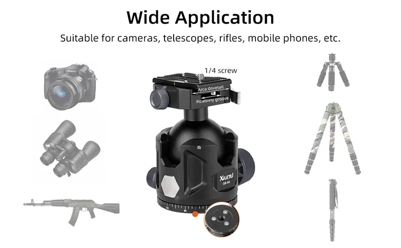 XILETU Aluminum Alloy Ball Head for Shooting Tripod Compatible with Arca Swiss and Picatinny for Hunting and Photography