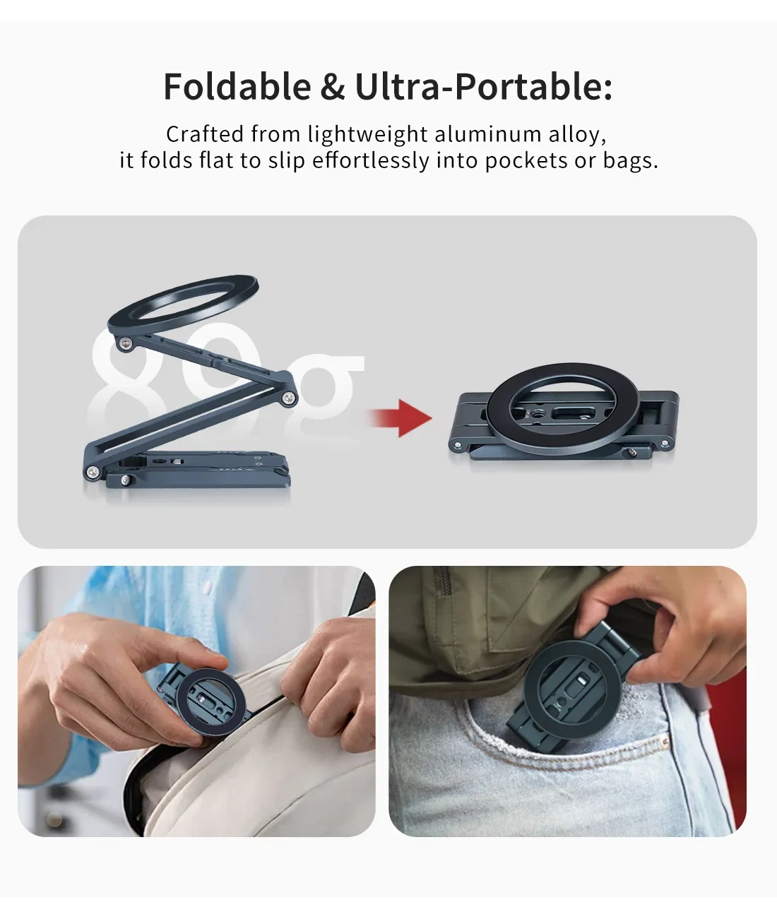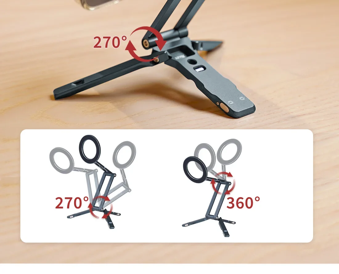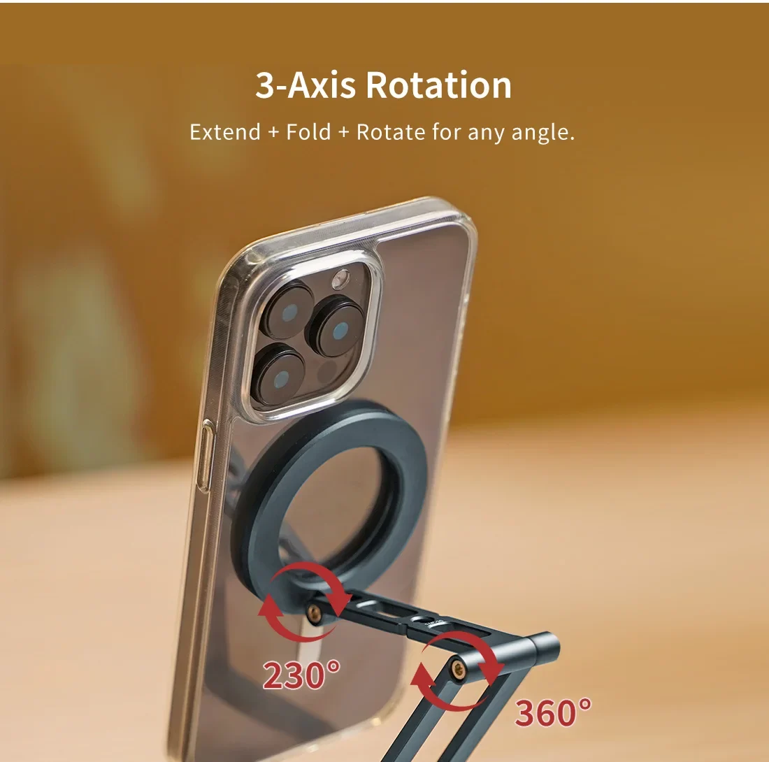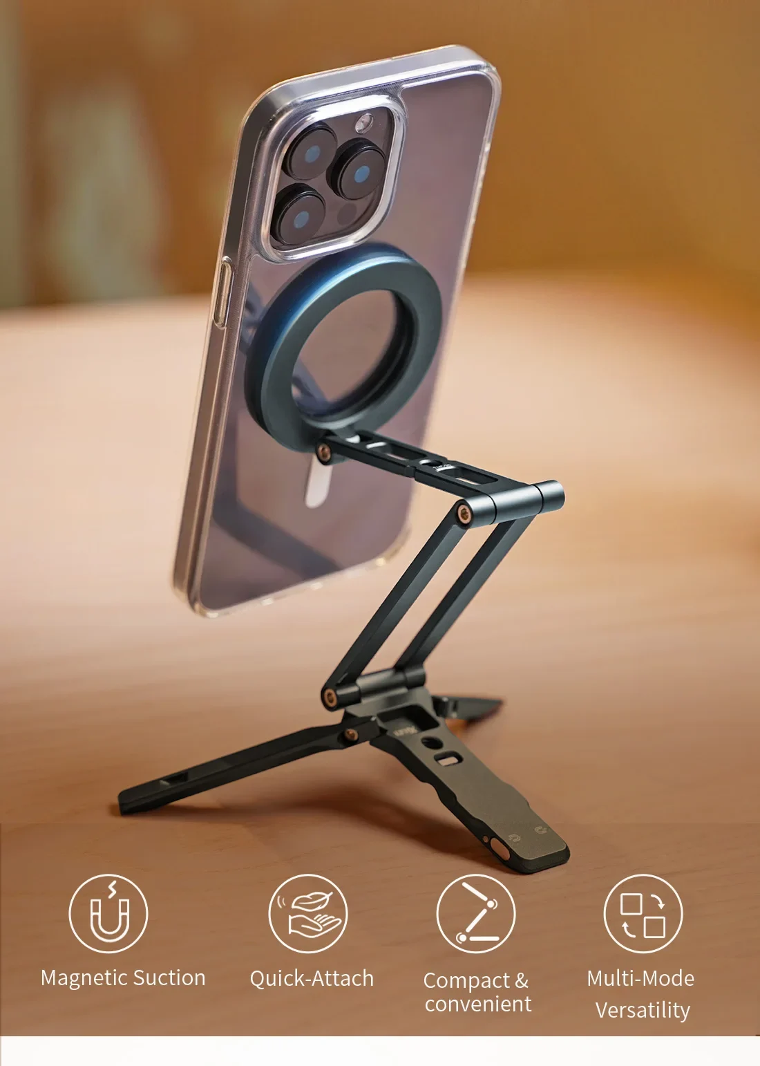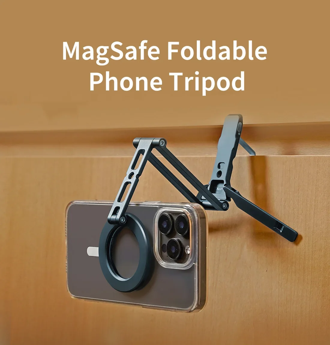 XILETU Magsafe Magnetic Phone Tripod Stand with Hook Foldable Desktop Holder for iPhone Smartphones Selfie Video