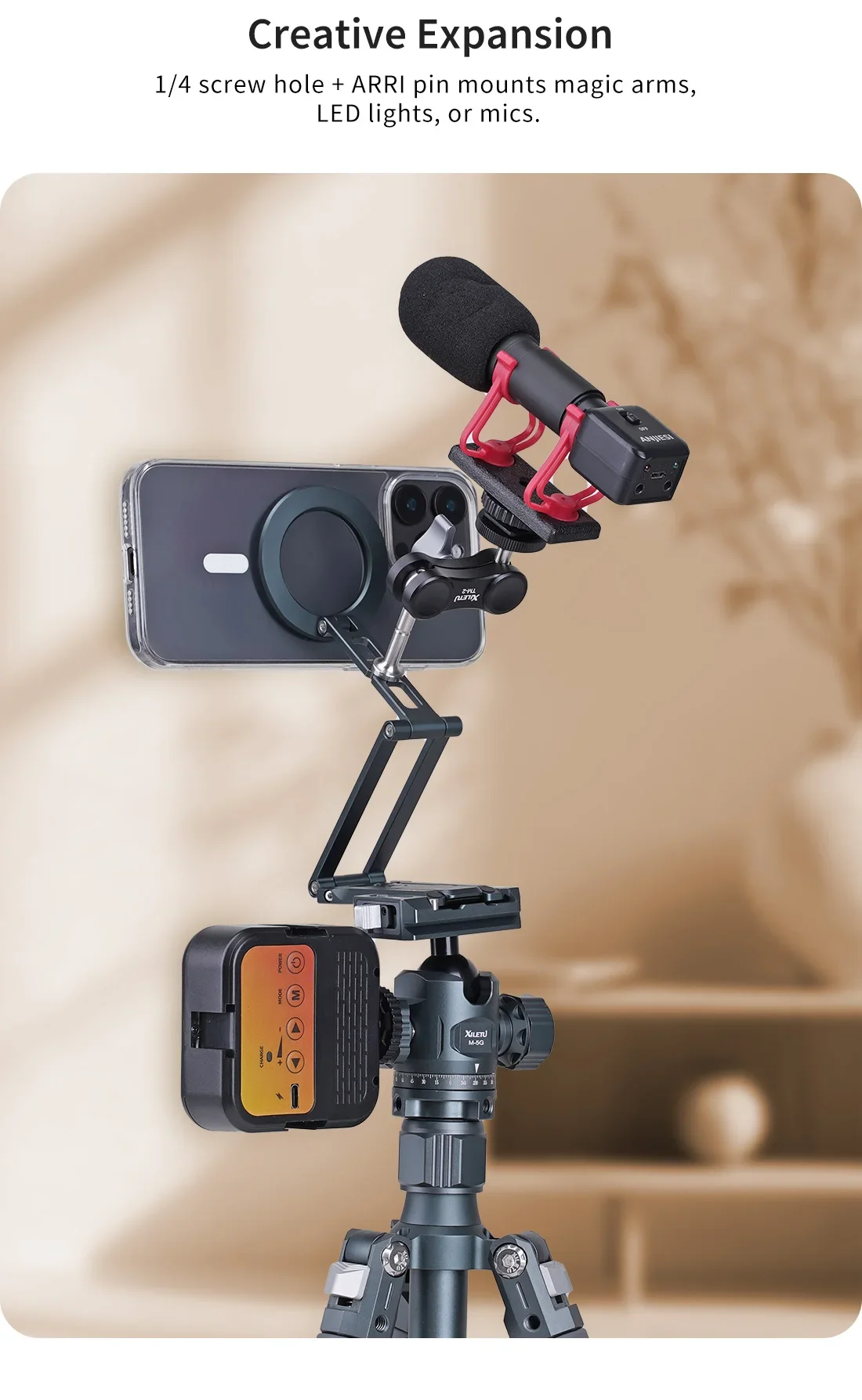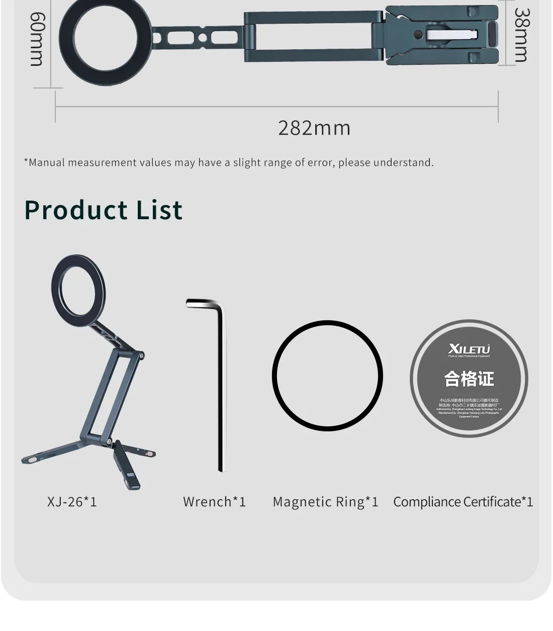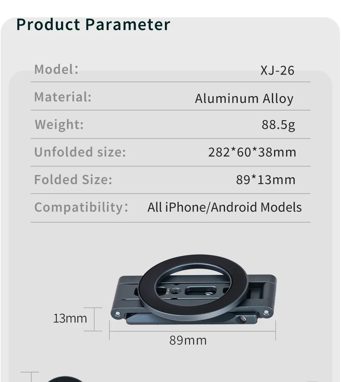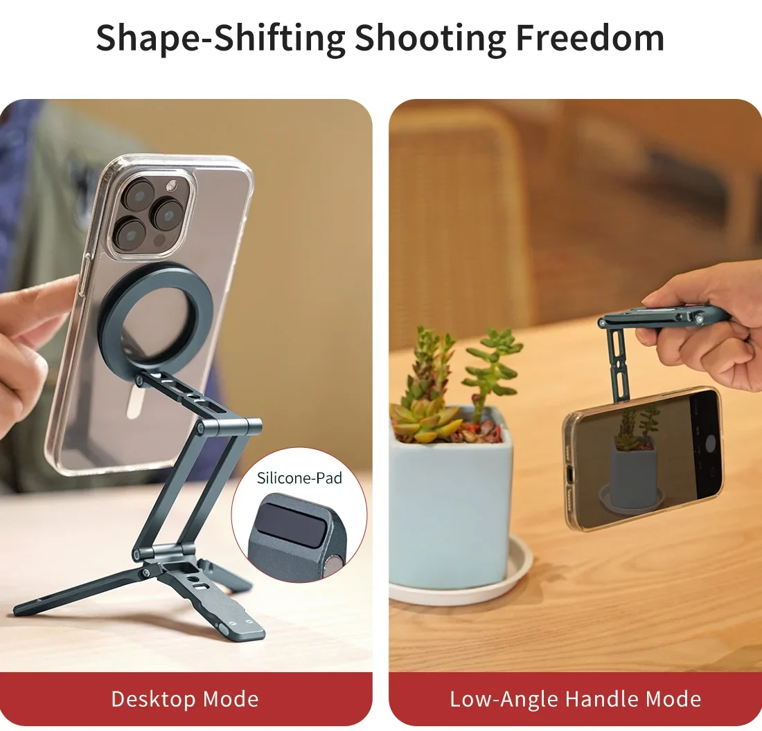 XILETU Magsafe Magnetic Phone Tripod Stand with Hook Foldable Desktop Holder for iPhone Smartphones Selfie Video