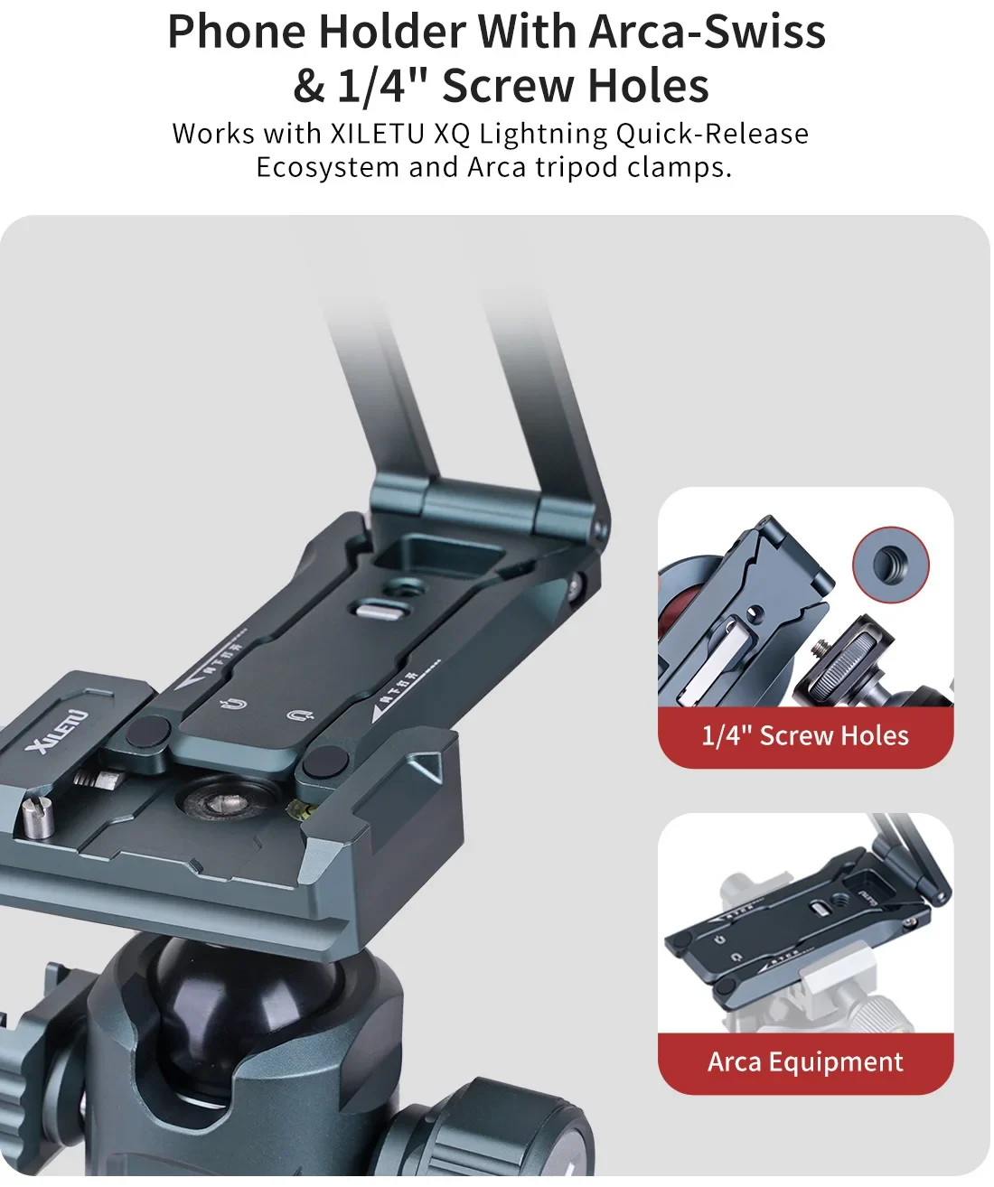 XILETU XS20 Mini Tabletop Tripod Desktop Phone Holder Stand with Clip and Ball Head for iPhone Cell Phone Smartphone DSLR Camera