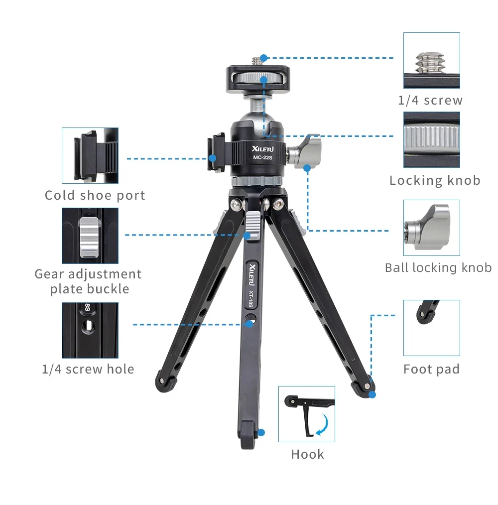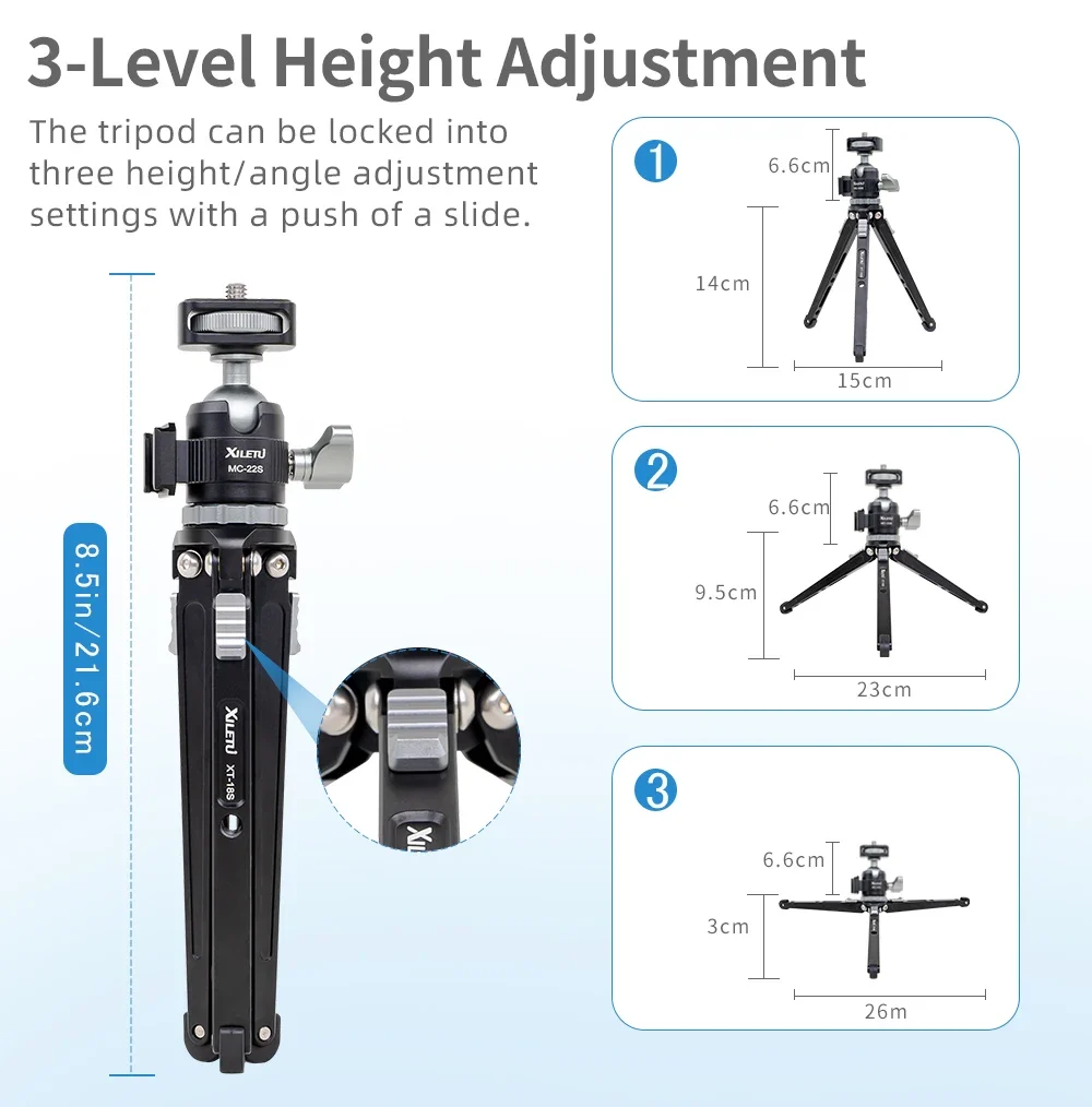 XILETU XS-20 Mini Desktop little Phone Stand Tabletop Tripod for Vlog Mirrorless Camera Smart phone with Detachable Ball head