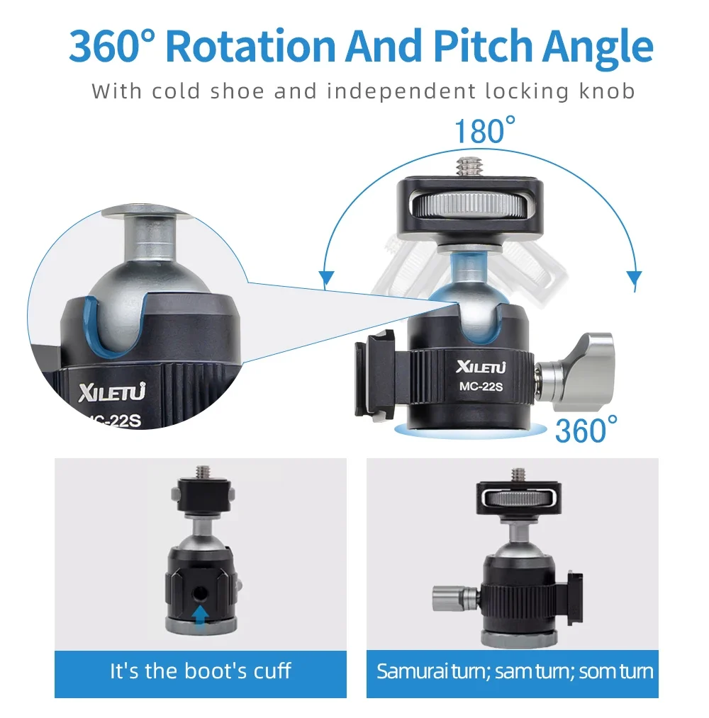 XILETU XTD30MC22 Mini Cold Shoe Ball Head Dual-Purpose 1/4 Screw Aluminum Alloy Camera Mobile Phone Tripod Selfie Stick