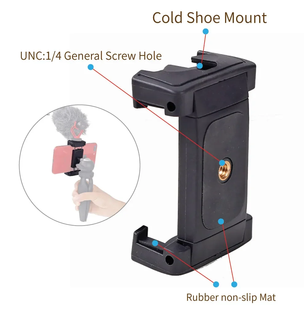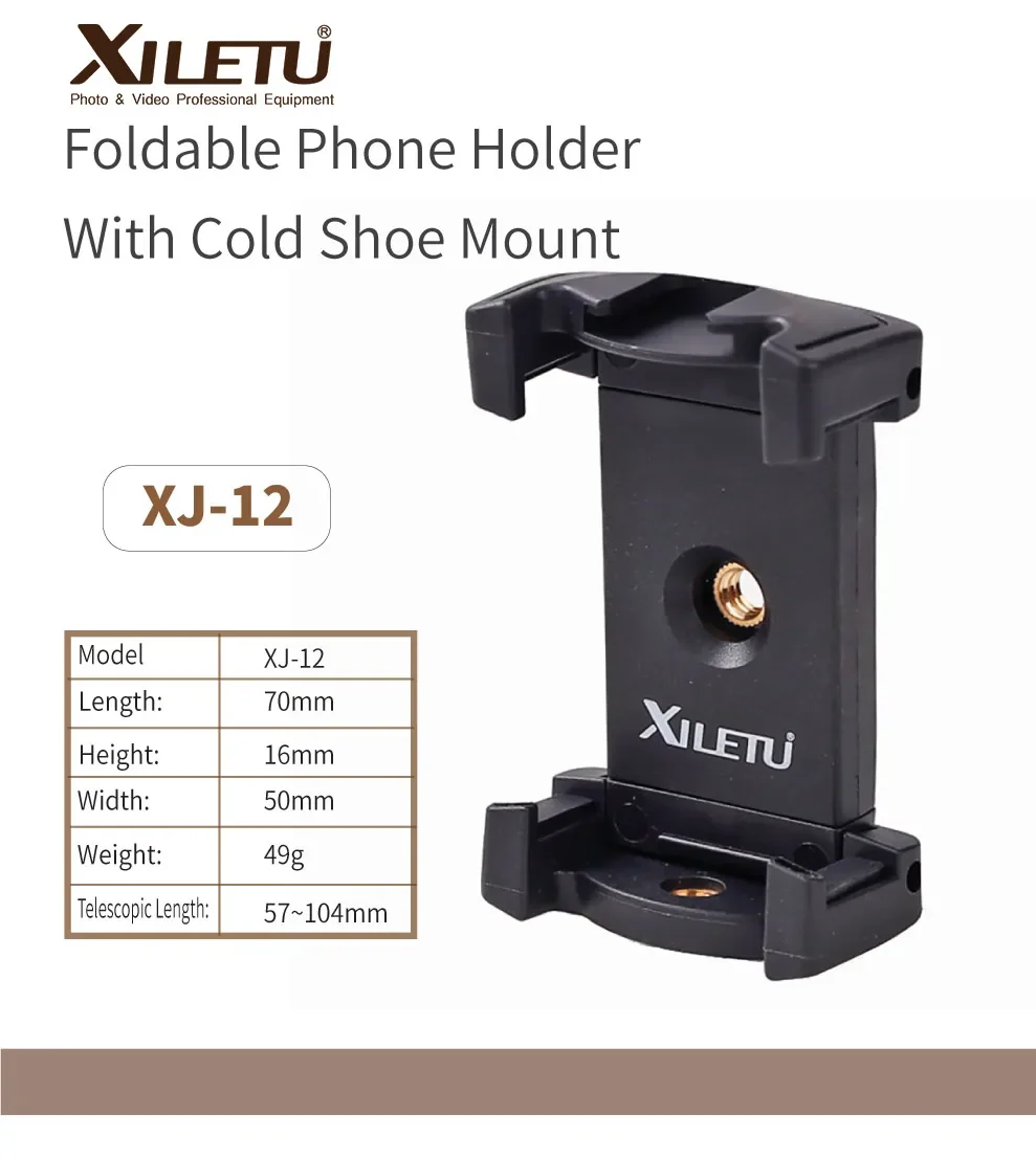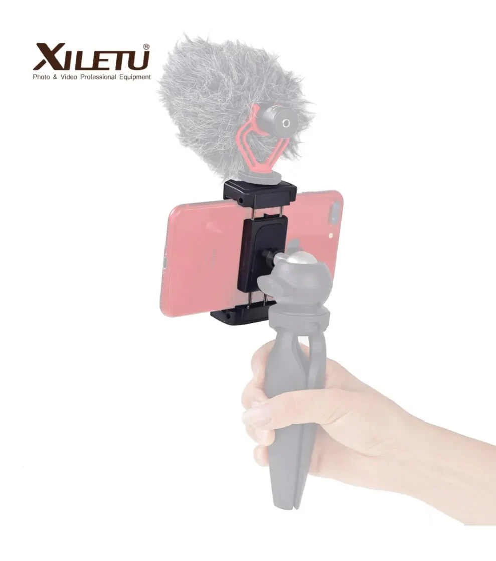 XILETU XJ-12 Mobile Tripod Mount Clipperwith Cold Shoe Mount for Boya Rode VideoMicro Microphone 1/4” Tripod Clamp for iPhone X