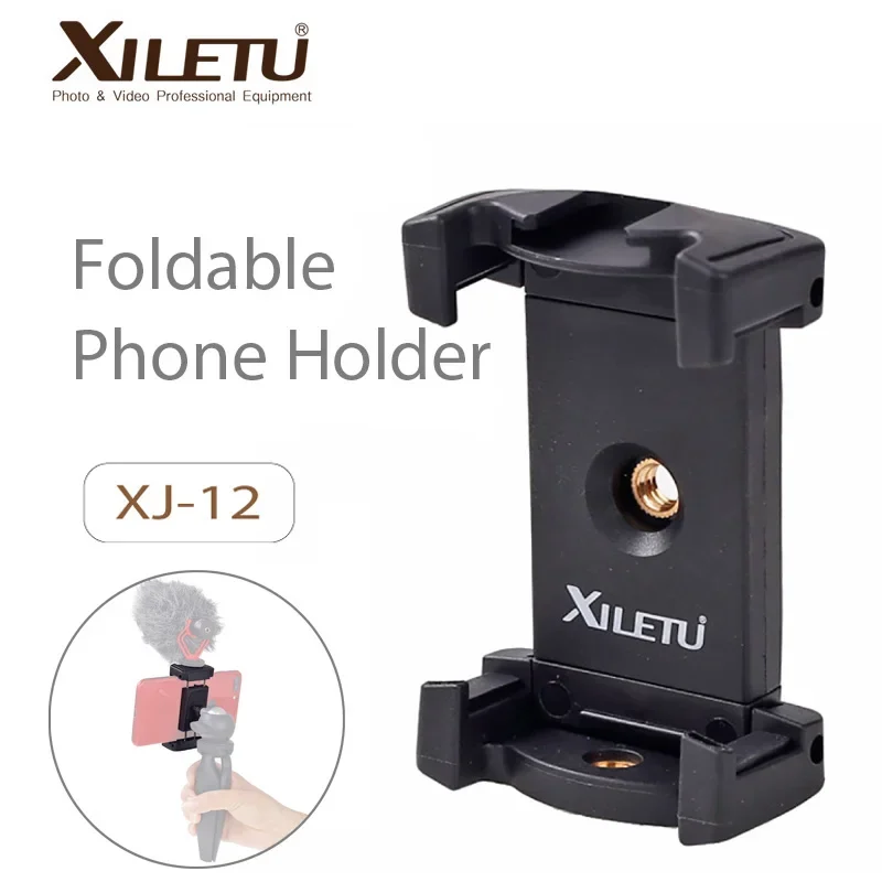 XILETU XJ-12 Mobile Tripod Mount Clipperwith Cold Shoe Mount for Boya Rode VideoMicro Microphone 1/4” Tripod Clamp for iPhone X