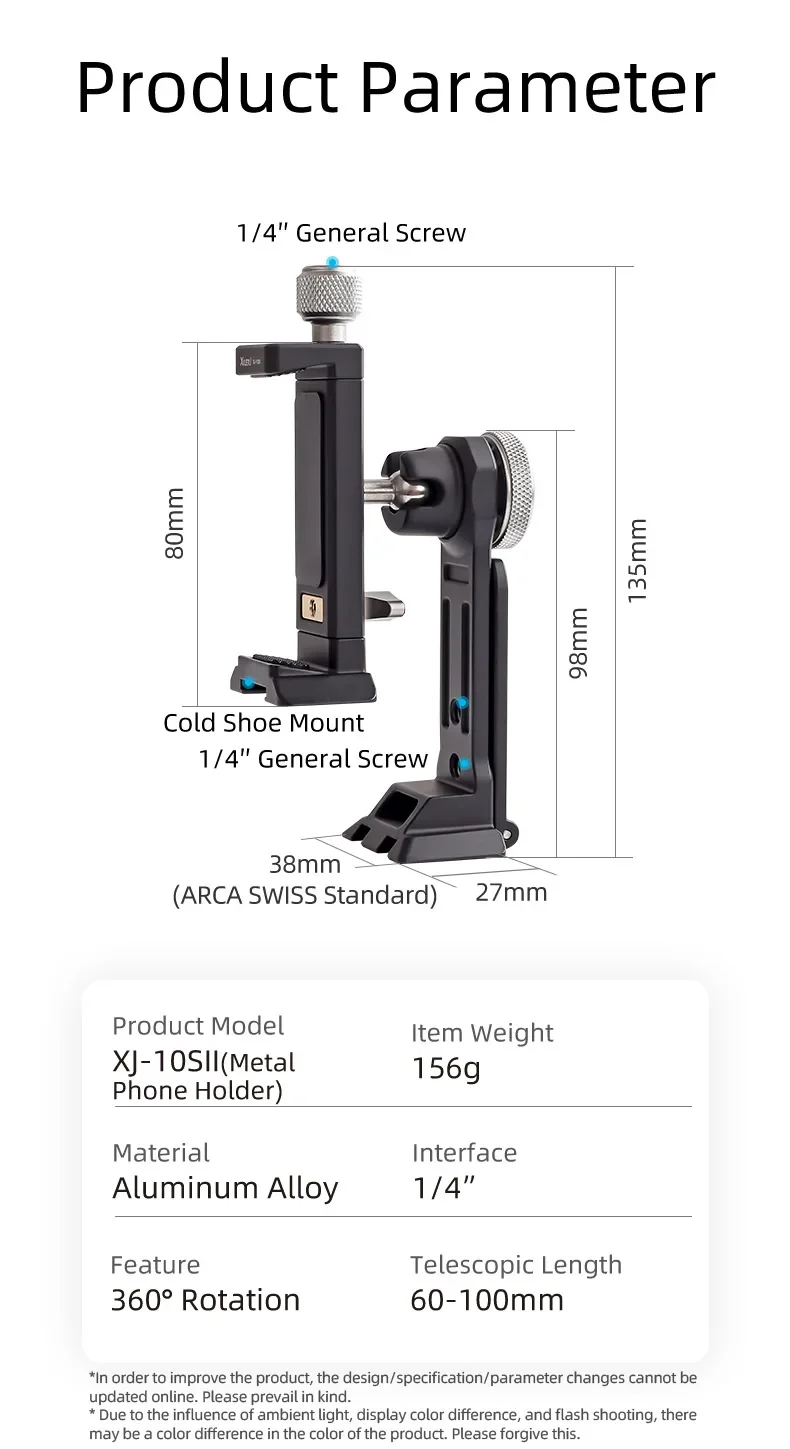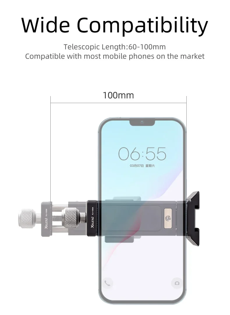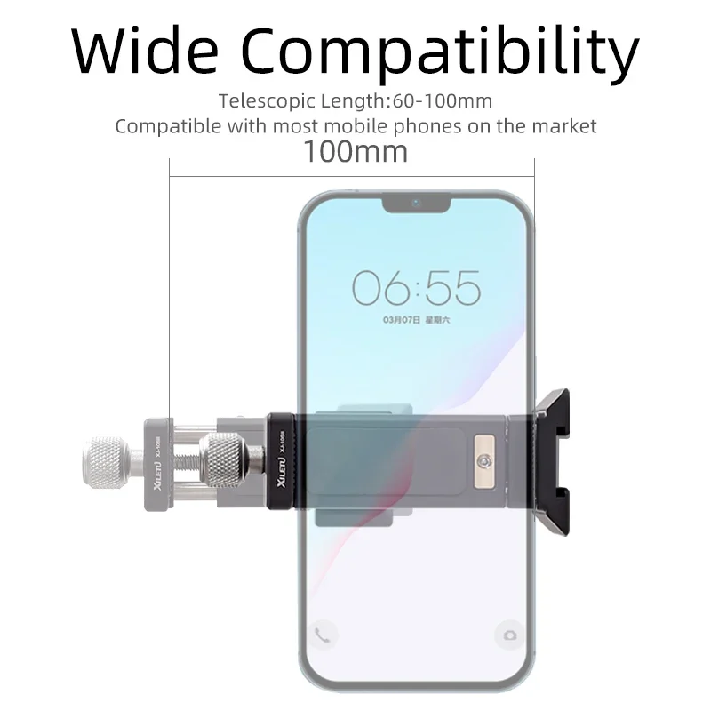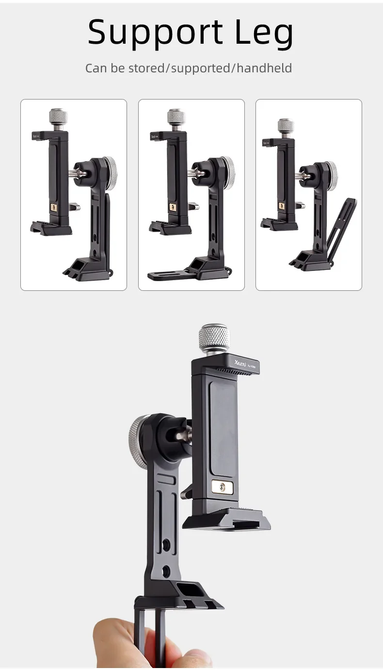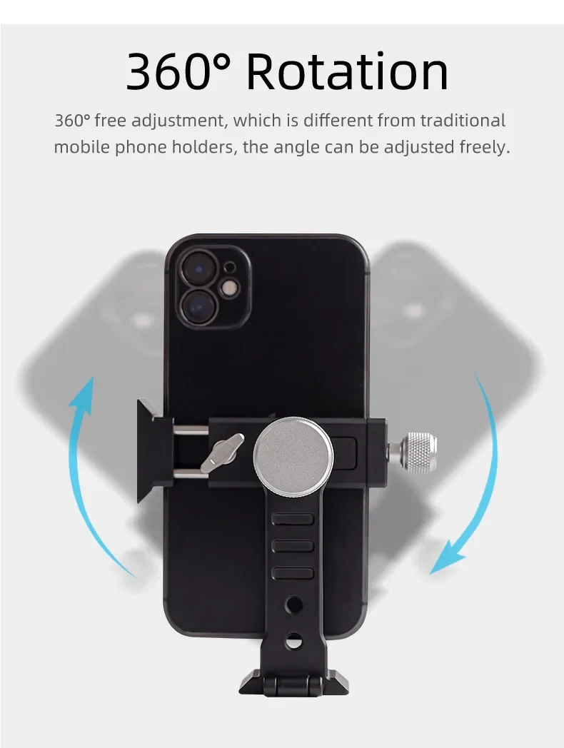 XILETU XJ10SII Universal All Metal Phone Tripod Mount Holder Clip Adapter 360 Degree Rotation Mobile Clamp For ARCA Style Plate