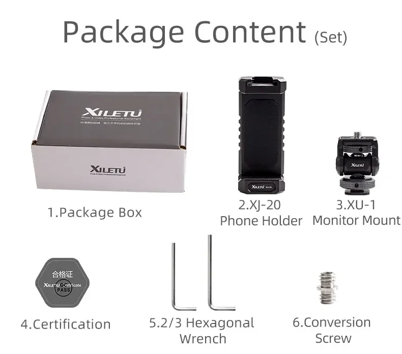 XILETU XJ20 Universal All Metal Phone Holder tripod Mount w Cold Shoe Mount Compatible w iPhone Cell Phone Camera Video Vlogging<span> - </span>XU1