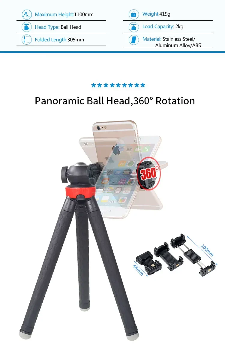- Telescopic Length(Phone Holder): 48~100mm