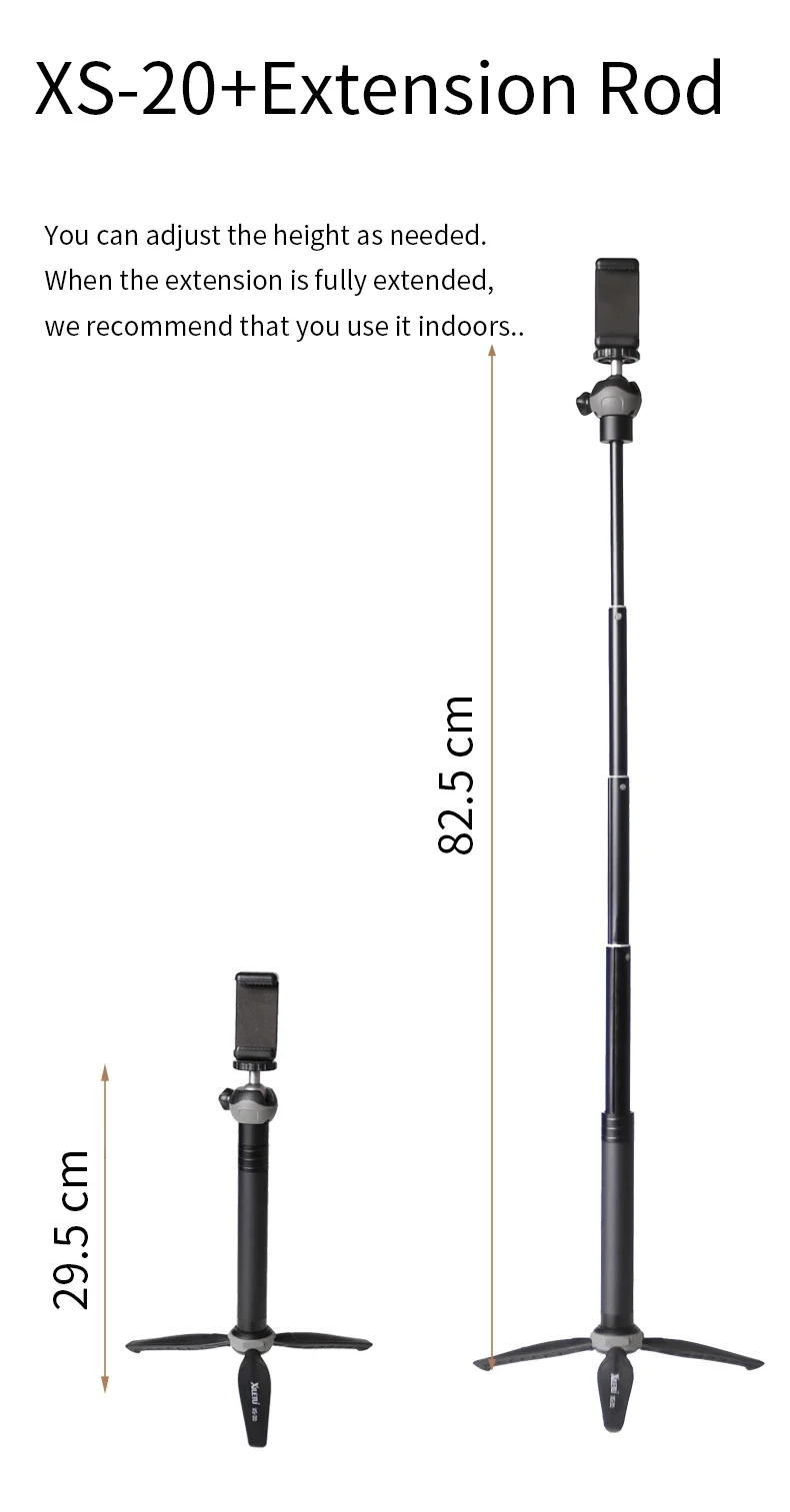 XS-20 amin material is high quality ABS and aluminum alloy,More portable and stable.Apply to Digital camera,Mirrorless camera,Smart phone.