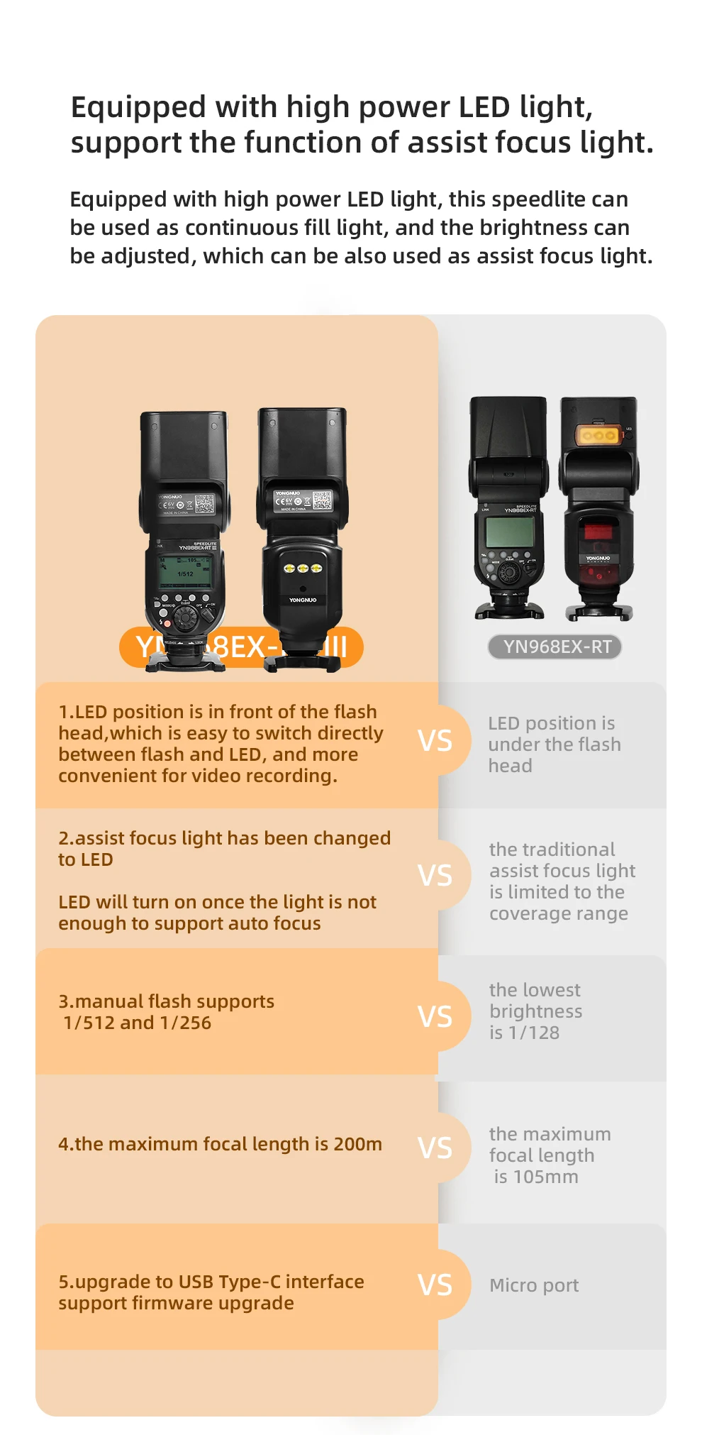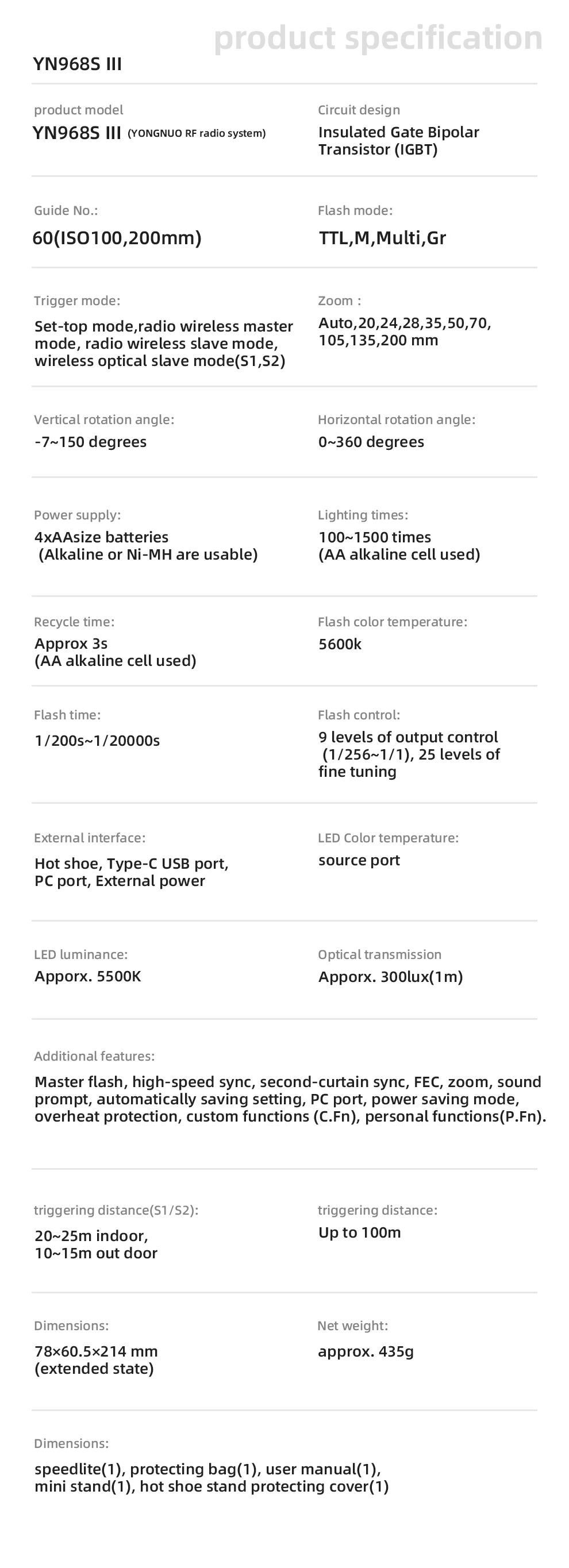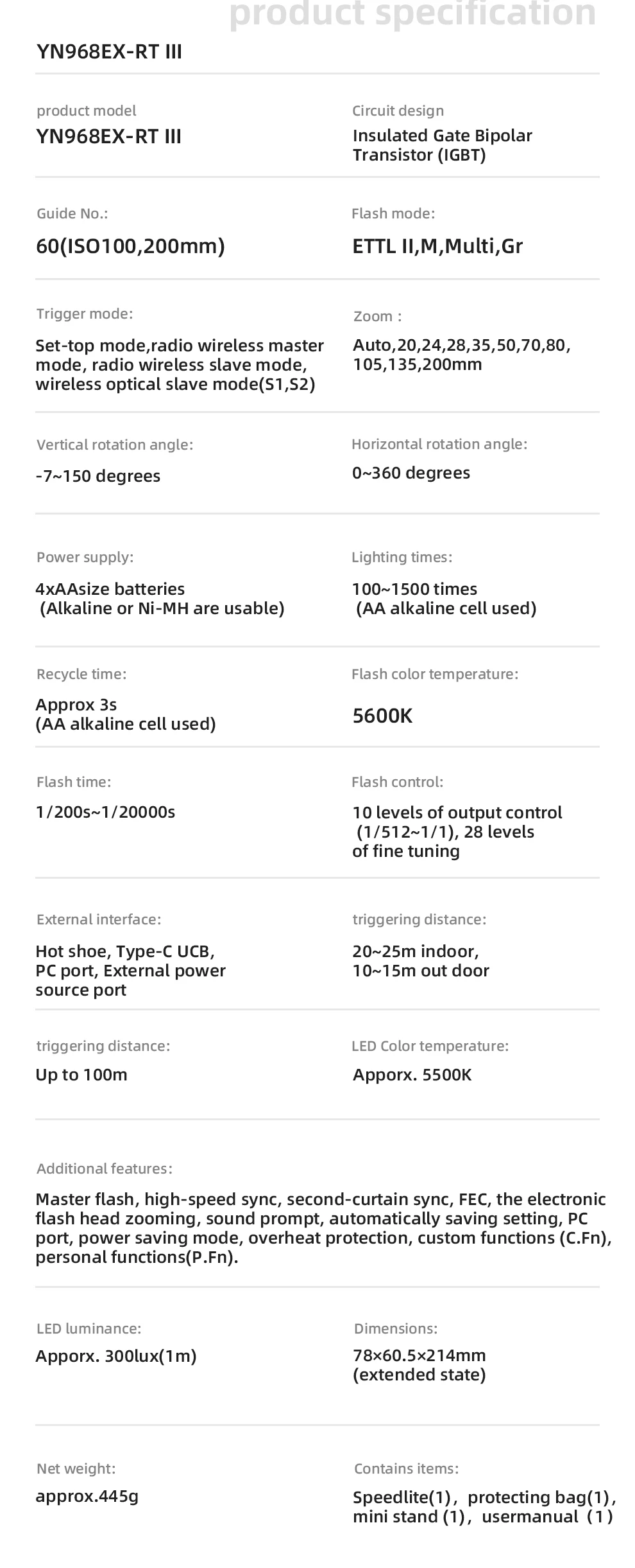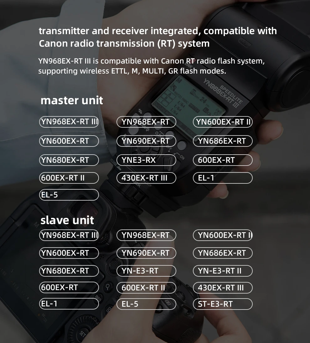 YONGNUO YN968EX-RT III C / YN968S III Wireless Flash Speedlite HHS ETTL 1/8000 2.4G Equipped with LED For for for for Canon➧f