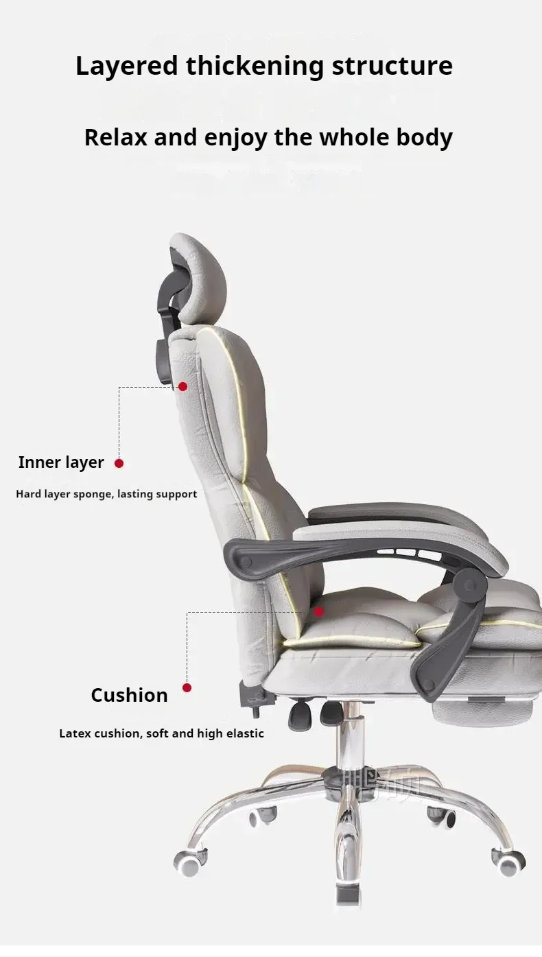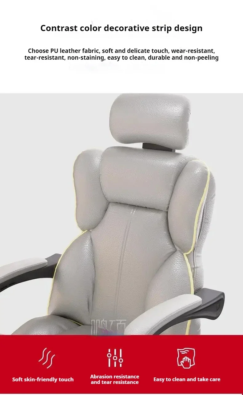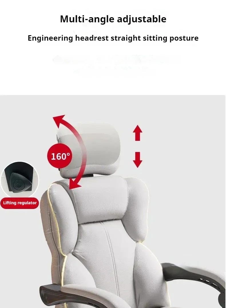 تصميم الكرسي سهل الاستخدام للغاية، ومجهز بمساند رأس ومساند للذراعين قابلة للتعديل والتي يمكن تعديلها بحرية وفقًا للطول الشخصي وعادات الجلوس، مما يضمن أنه يمكنك الاستمتاع بأفضل تجربة راحة أثناء العمل أو الراحة.بالإضافة إلى ذلك، فإن الكرسي مجهز بدواسات القدم، والتي يمكن أن تخفف بشكل فعال من التعب الناجم عن وضعية الجلوس الطويلة وتسمح لقدميك بالاسترخاء التام.