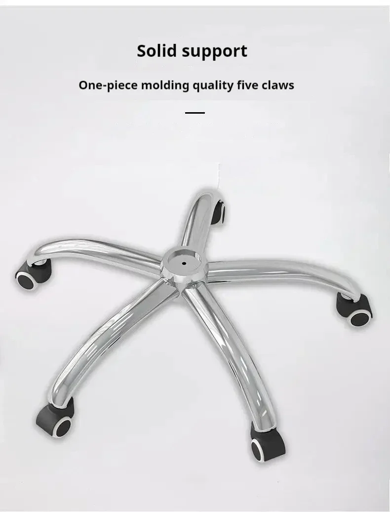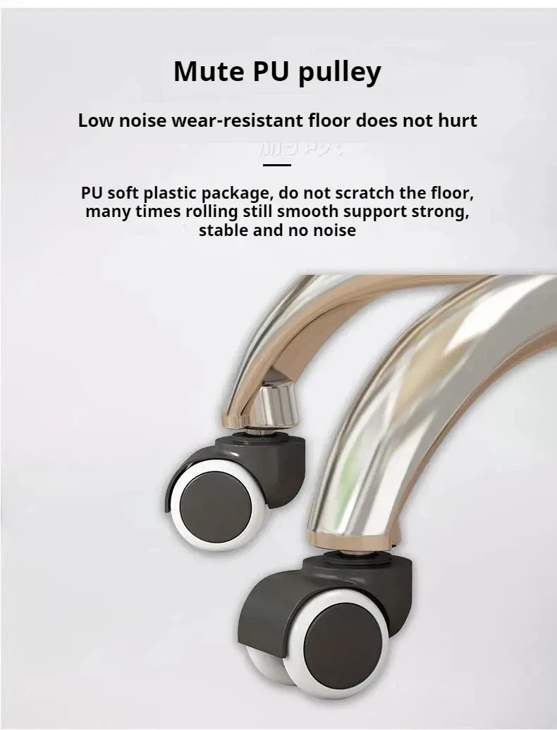 الجزء السفلي من الكرسي مجهز بعجلات مرنة يمكن تحريكها بسهولة، مما يجعلها مريحة لك للتنقل بحرية في المكتب وتحسين كفاءة العمل. وفي الوقت نفسه، فإن الأقدام المعدنية الفضية ليست جميلة وأنيقة فحسب، بل تعزز أيضًا ثبات الكرسي وقدرته على التحمل، مما يجعلك تشعر براحة أكبر أثناء الاستخدام.