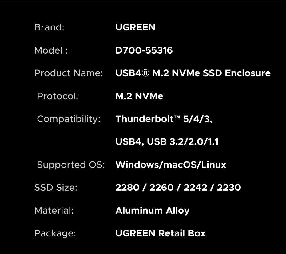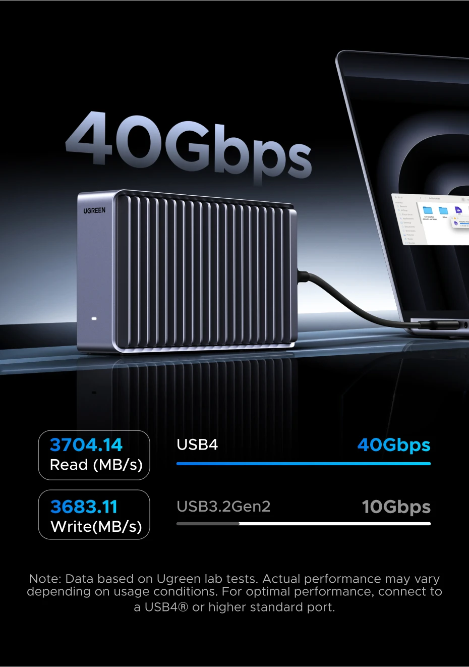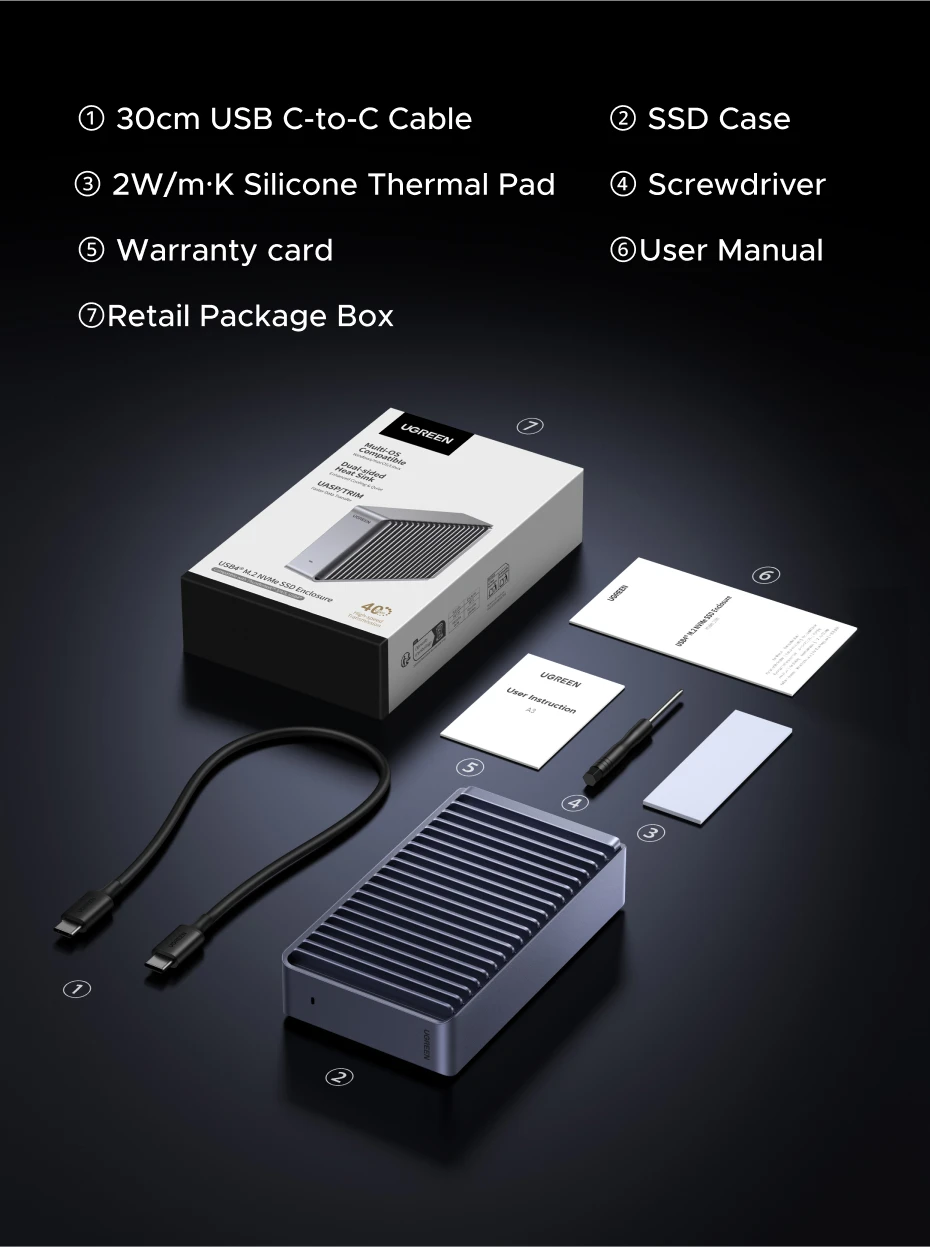 【RU】UGREEN 40Gbps M2 SSD Enclosure USB4 NVMe Case Compatible with Thunderbolt M.2 NVMe SSD Enclosure for Mac Mini M4 MacBook Pro