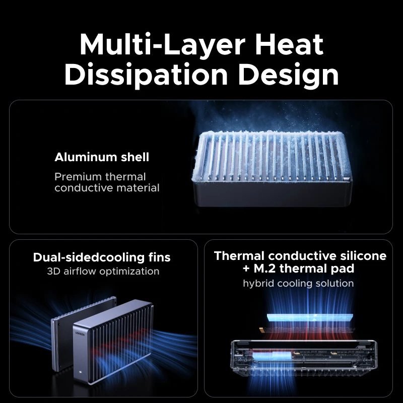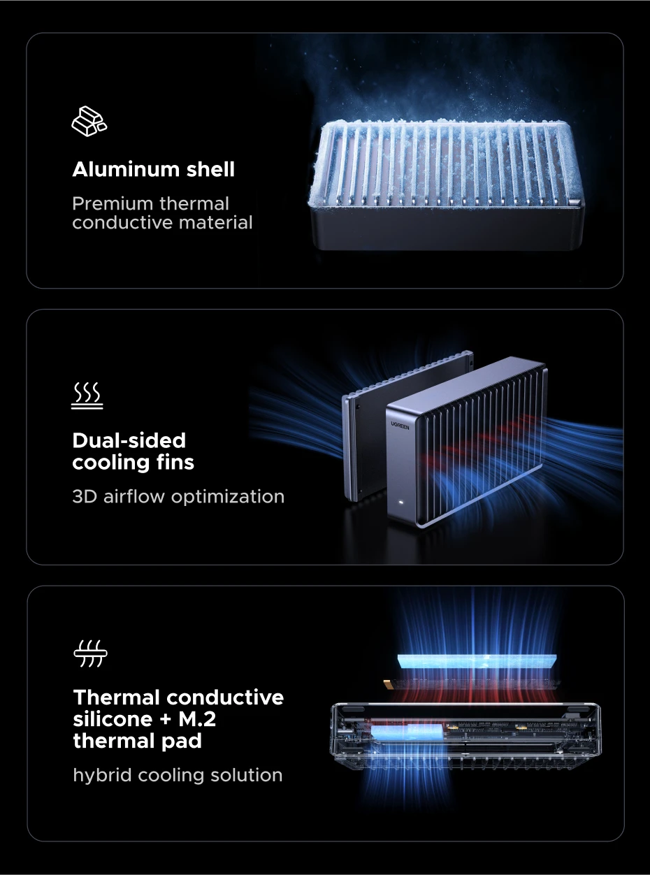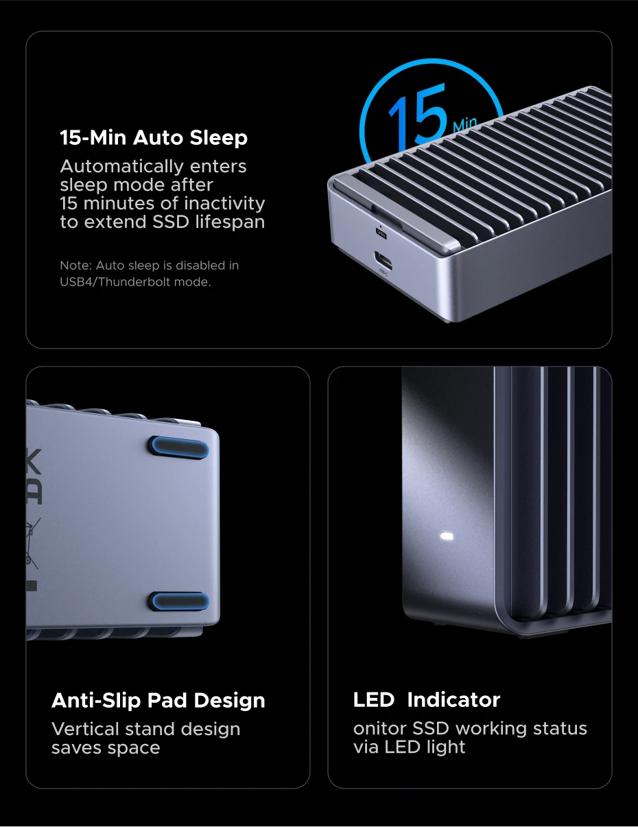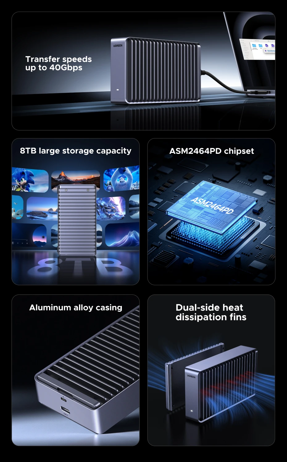 【RU】UGREEN 40Gbps M2 SSD Enclosure USB4 NVMe Case Compatible with Thunderbolt M.2 NVMe SSD Enclosure for Mac Mini M4 MacBook Pro