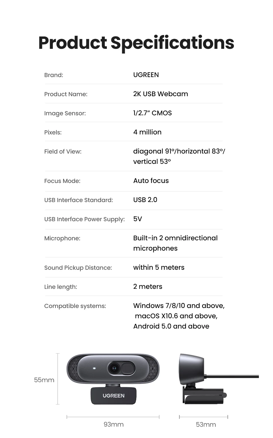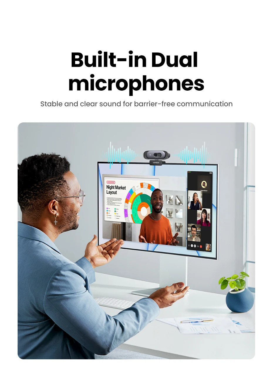 【RU】UGREEN USB 2K HD Mini For WebDual Microphones for Youtube Zoom Video Calling 2K USB