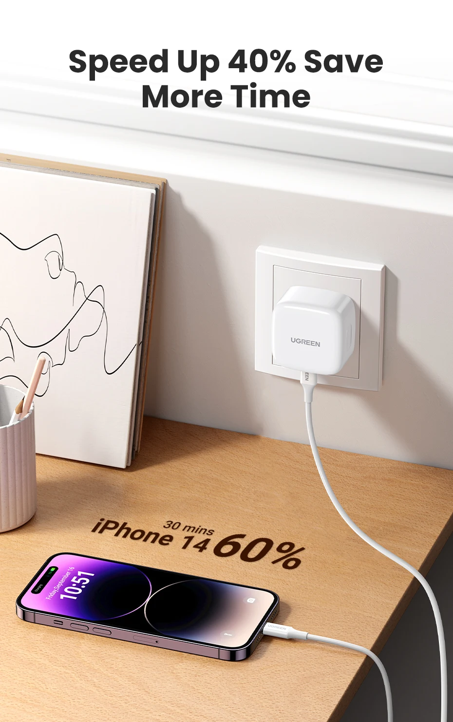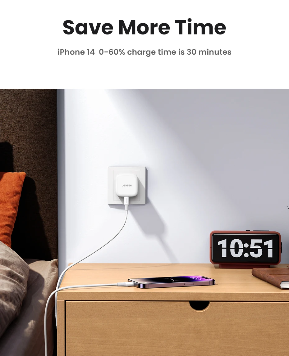 【UK Plug】UGREEN Quick Charge 4.0 3.0 QC PD Charger 30W USB Type C Fast Charger for iPhone 15 14 13 Pro Xiaomi Phone PD Charger