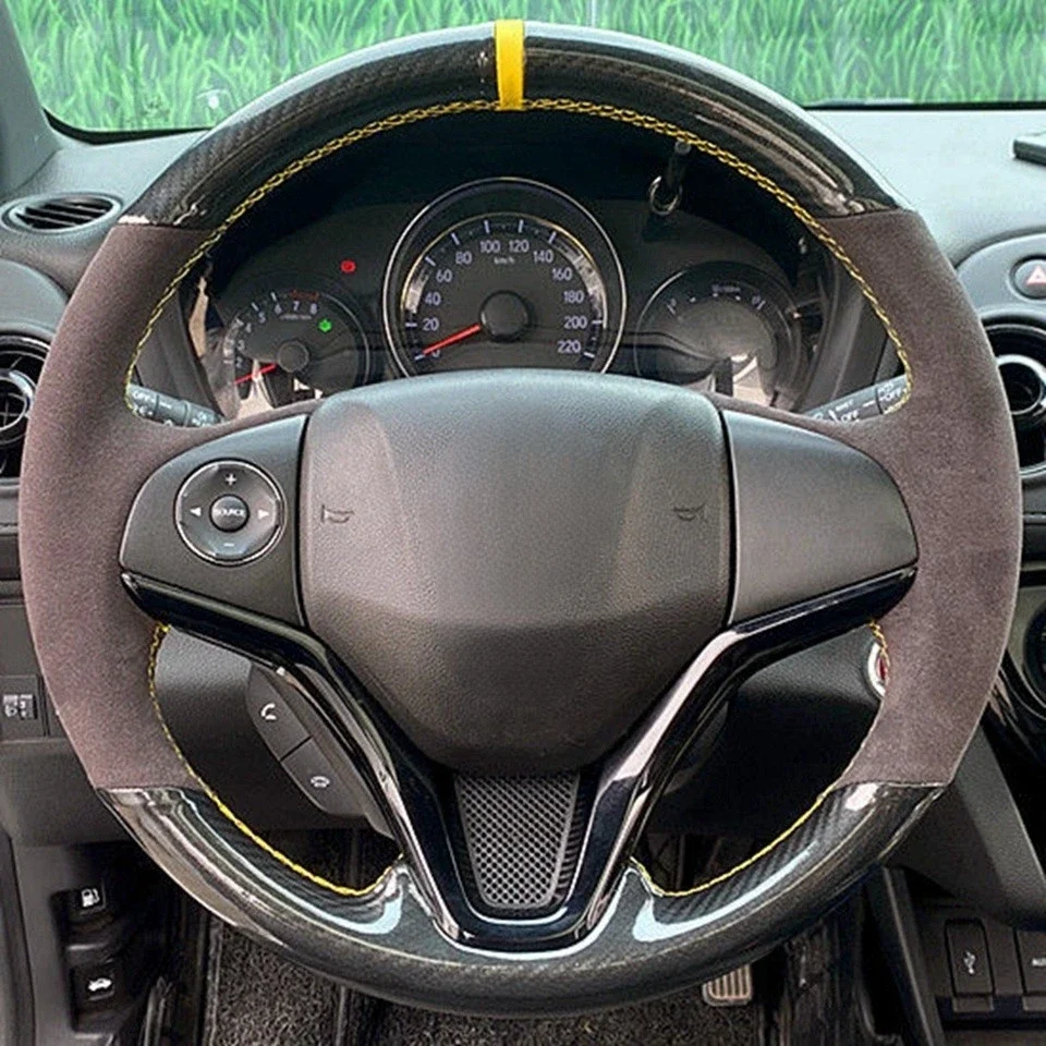 عجلة توجيه سيارة غطاء DIY بها بنفسك عدم الانزلاق الأسود الجلد المدبوغ ألياف الكربون لهوندا سيفيك سيفيك 10 2016-2019 CRV CR-V 2017-2019 وضوح